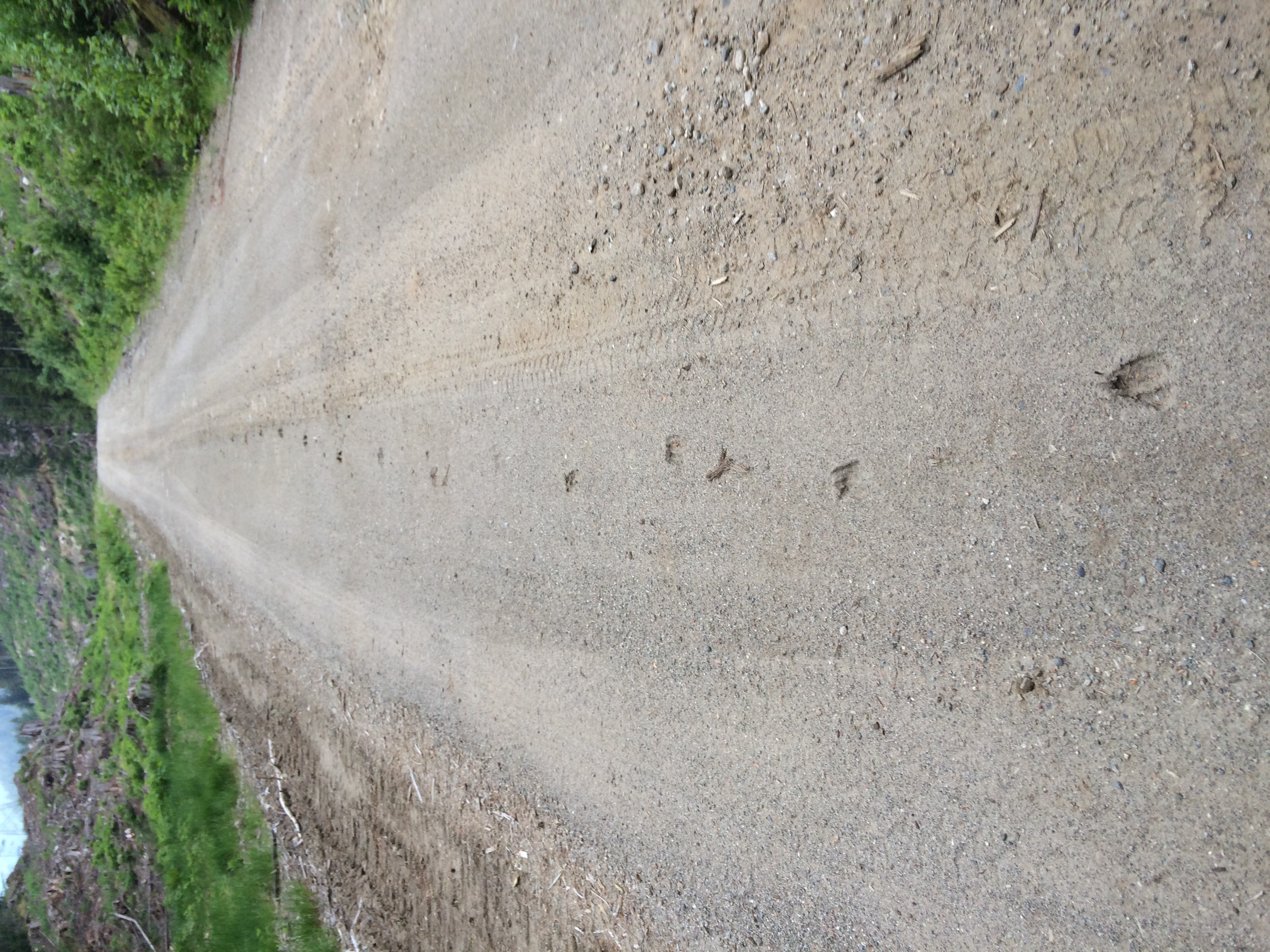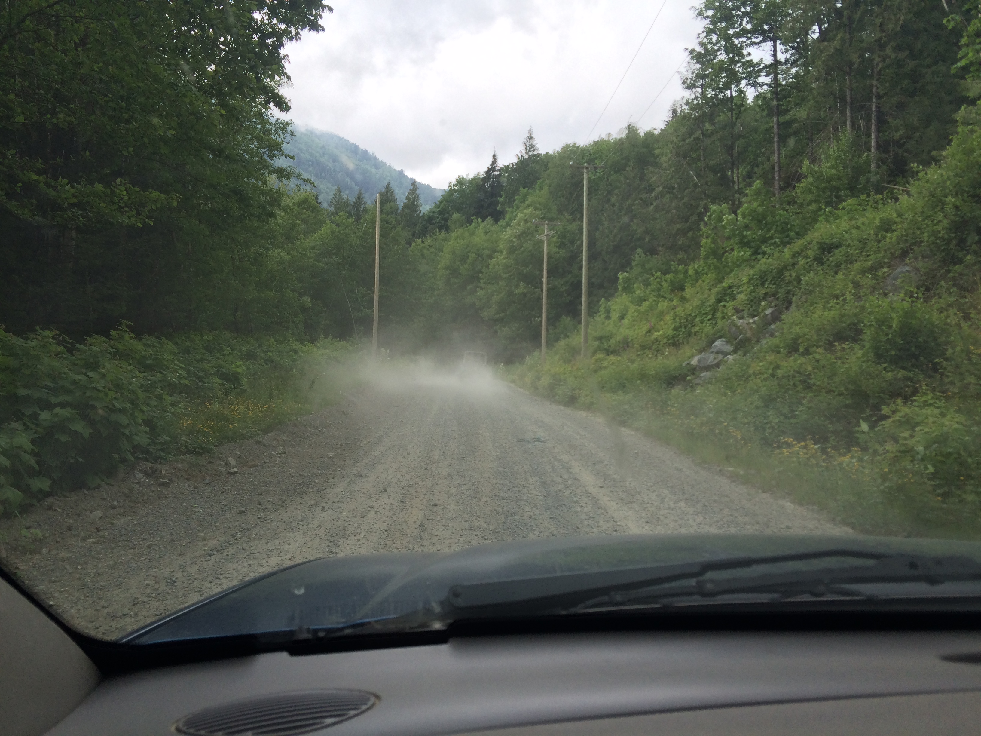 I had no such obligation, so I said my goodbyes to the guys, and headed a few km further east, to the Garnet/American FSR system. Conditions were much like those at Ruby Creek, though there was much more bear scat in evidence. I managed to get over the pass between the 2 creeks, but at just 11km from where the American Cr. FSR returns to pavement, came to a blowdown across the road, with a mudslide 80 meters further along, followed by a 5' deep x 15' wide washout just beyond that. I took that as a definite sign to backtrack the way I had come, call it a day, and head home for supper. Altogether, I cruised about 60km (40mi) of deteriorating logging roads today, so the truck and I are feeling a bit jostled and dusty.