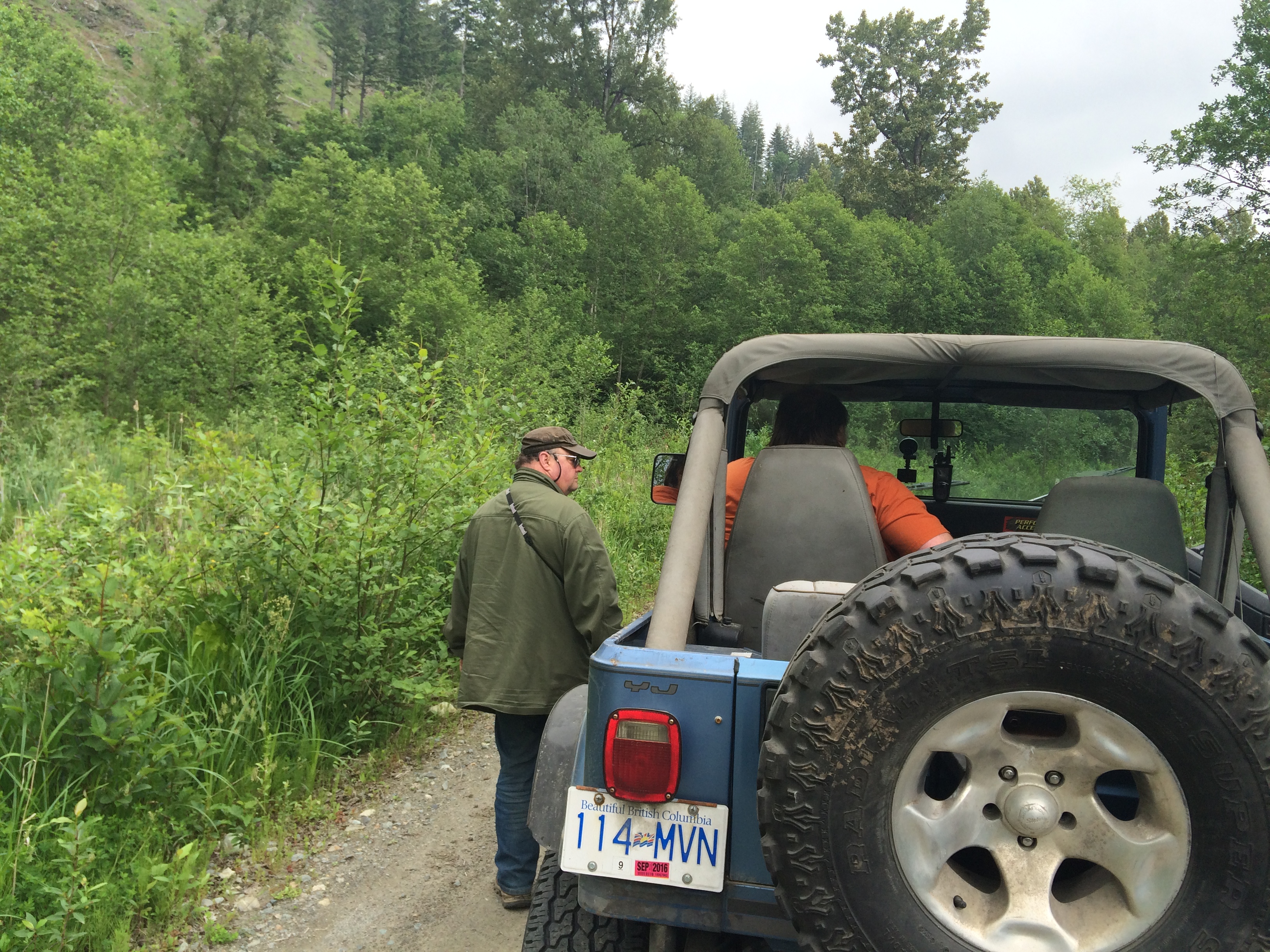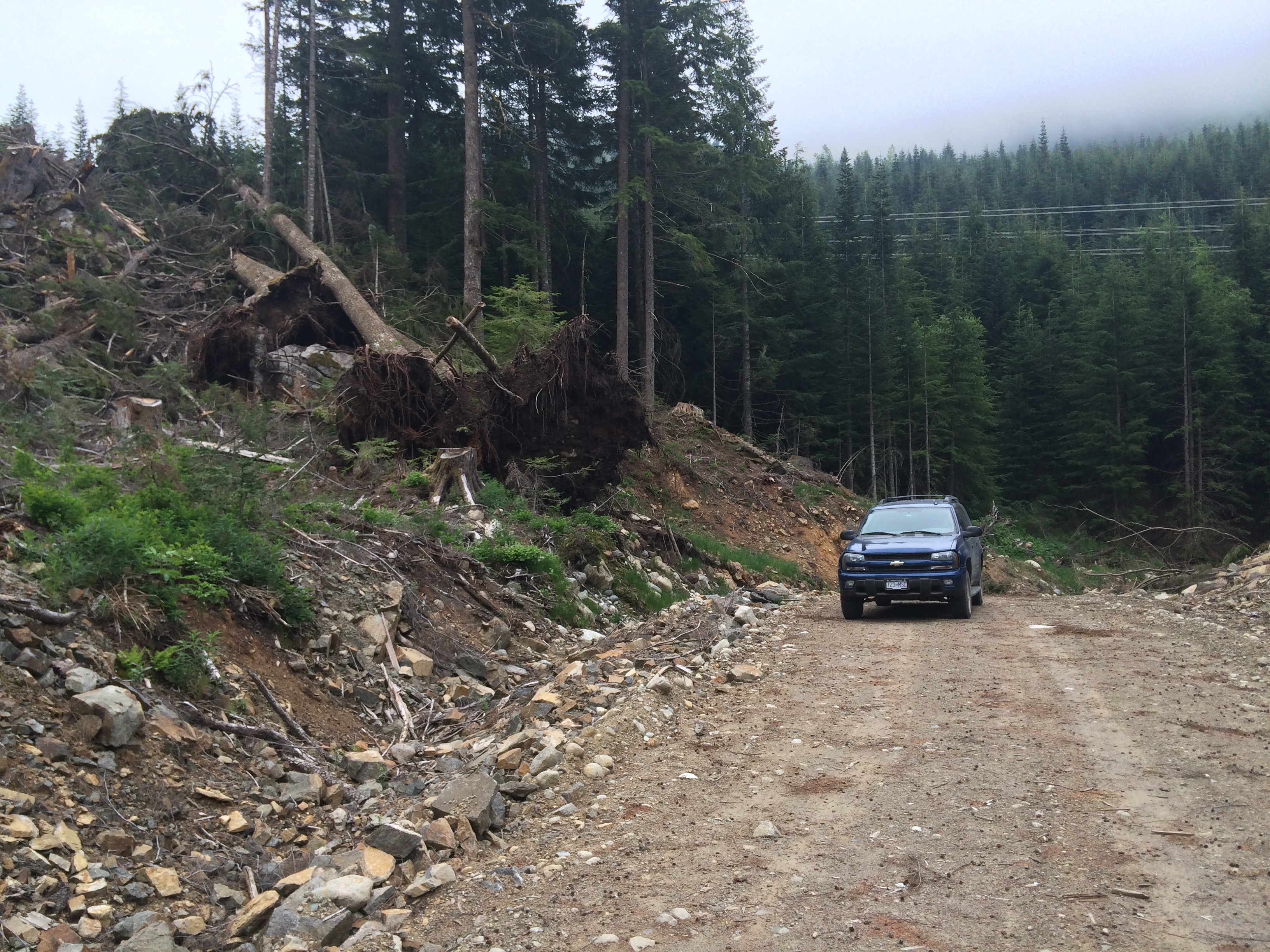 We hadn't been on the forest roads in the area since last summer, when the 2 main ones, Ruby Creek FSR and Garnet/American Creek FSR, were quite busy with construction traffic for a twinning of the main power lines that run across the mountains. It was nice to see that the work is now finished in the 2 watersheds north of Hwy 7, and the roads are now much quieter, with no logging in those valleys, either. The downside, of course, is that the winter storms have done some damage to the roads, which probably won't be repaired until a new timber cut opens up, but that's why we drive 4x4s, right? Most of the blowdowns have been cut through by ATVers and 4x4ers where they were blocking the trails, so they weren't any real challenge, but each of the branches of the roads ended in washouts much too deep to attempt, even with Bill's short, very lifted old Jeep.