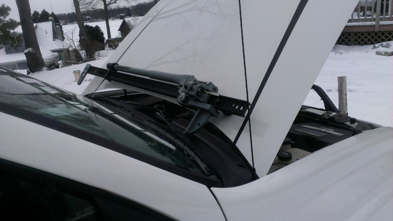 That said, it does look good from the outside of the vehicle. However, what it doesn't look like is a functional mount. From the looks of it, to remove it on the trail you will have to completely unbolt it from the hood. It doesn't look like it would be a very user friendly set up.