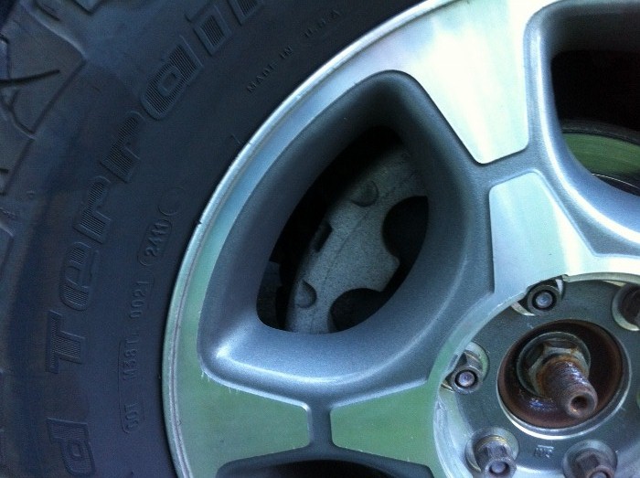After the bracket is off, the next step is to remove your rotor. If you end up like me, you'll have these annoying metal tabs which have to be removed first. Then the rotor will pull straight off.