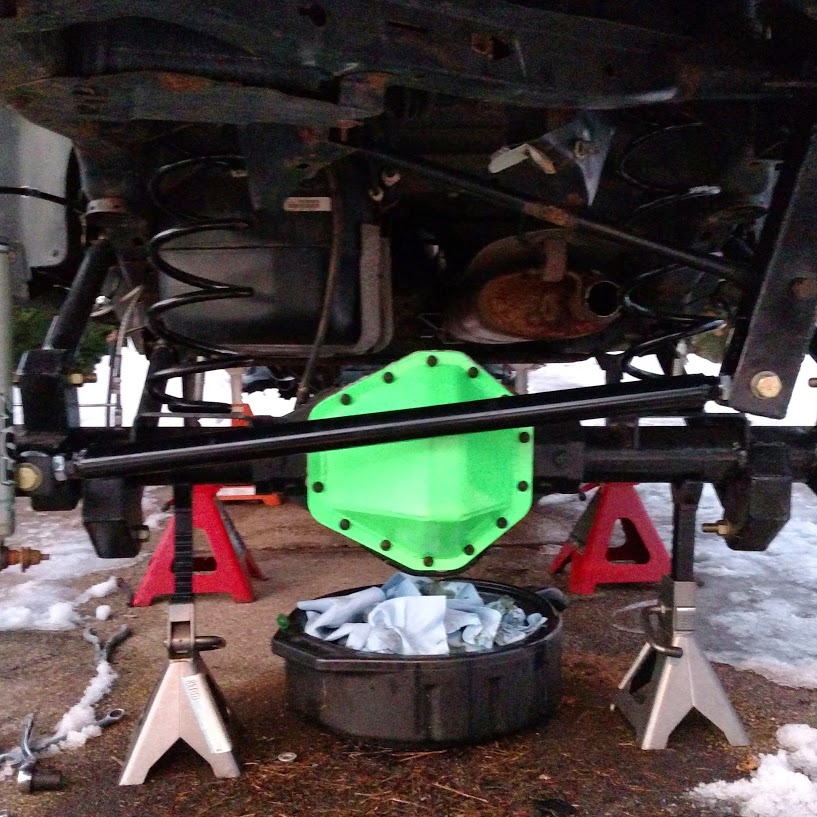 The front diff from the 3500 wouldn't fit in the stock subframe, additionally it couldn't be kept at a reasonable height if I centered it even with a rear sump pan, so I used it in the stock configuration and tossed some 5.13s in it. With 37s it should act about like a stock trailblazer with 4.10s
