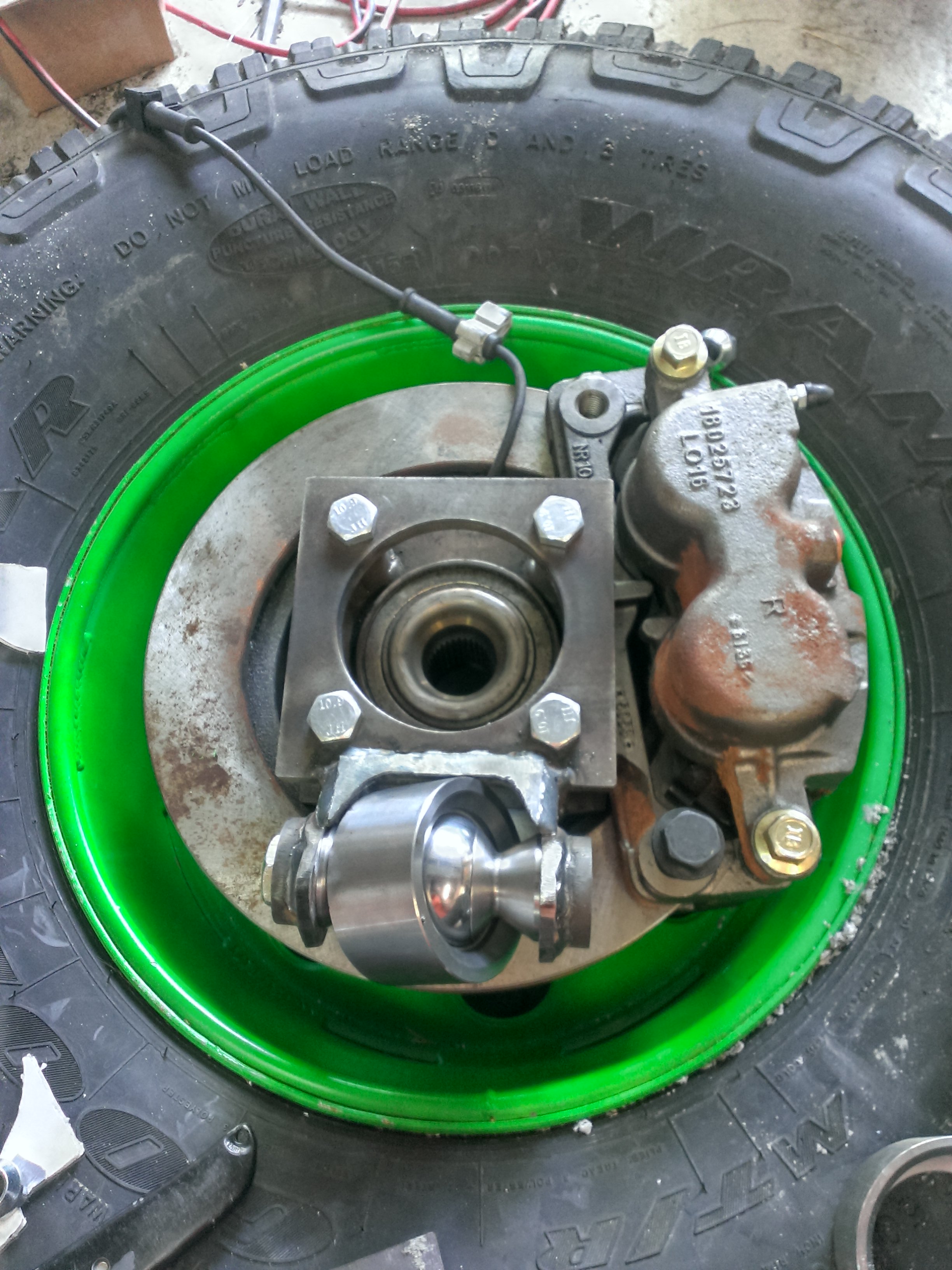 Eventually I got the wheels powdercoated, assembled them with James02, and aired them up without issue, tossed some airsoft beads in em for balance. Bent up some subframe tubes, made some diff brackets for the front diff and the rear axle too. Ended up using some brake lines from a 3500 silverado with a 6" lift and adapted them to the trailblazer lines.