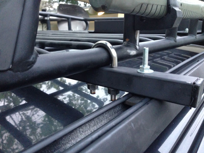 We just built a beefed up version of JD's roof racks. This time with better materials, ie steel bars, stainless steel u bolts and welded mounting plates. See everyone Friday morning in our ghetto rig.