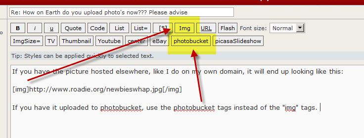 Or if the picture is ONLY on your computer and you have no place to upload it, you can "attach" it to your post using the "upload attachment" function below the editing window. I'm going to use that to attach a couple of screenshots I just took using the wonderful tool SnagIt.