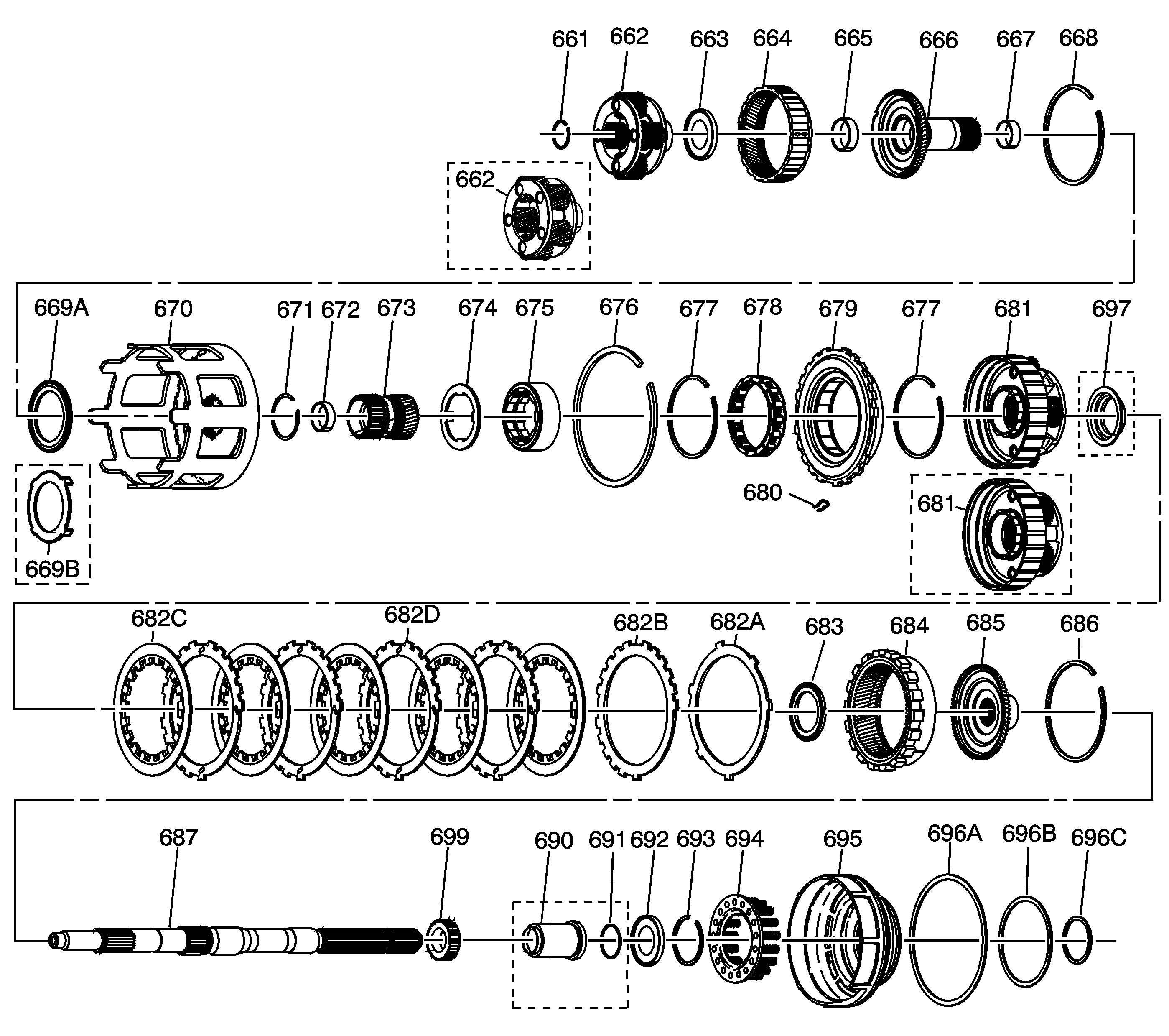 (605) Reverse Input Clutch Housing and Drum Assembly