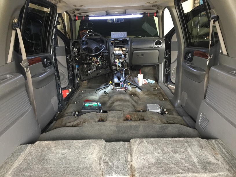 Tearing apart while PCM is in NC getting tuned. Here are some pics, the previous owner had an entertainment console as I see holes left in head panel.