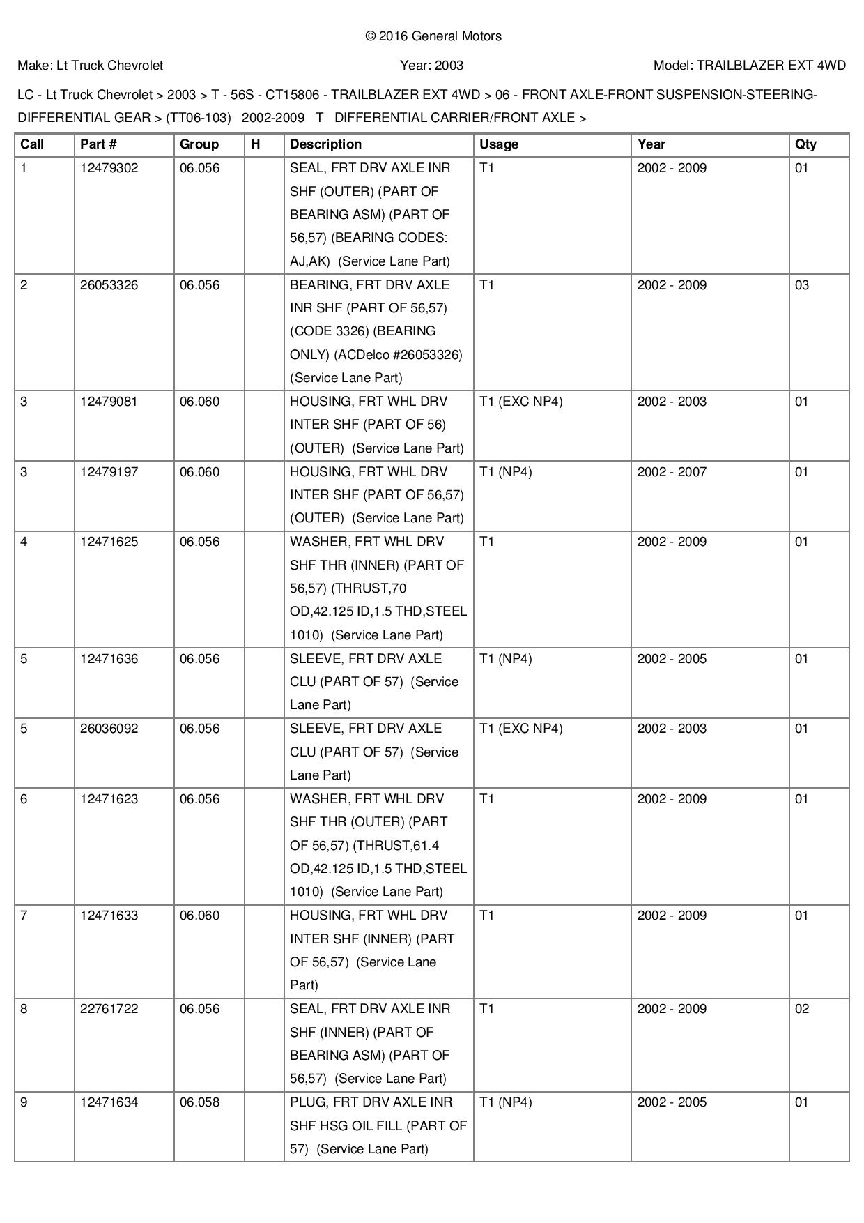 There are no significant changes to the front diff (other than the addition of the extra exterior hole) between the years of the trailblazer that I know of. Anything that fits one year model TB should fit any other.