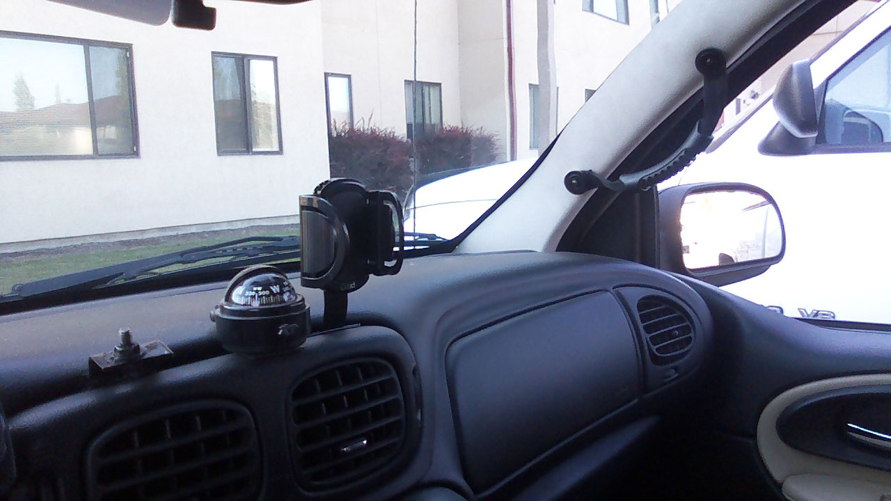 Camera mount, for new camera/video recorder with rugged ridge grab bar on the A pillar
