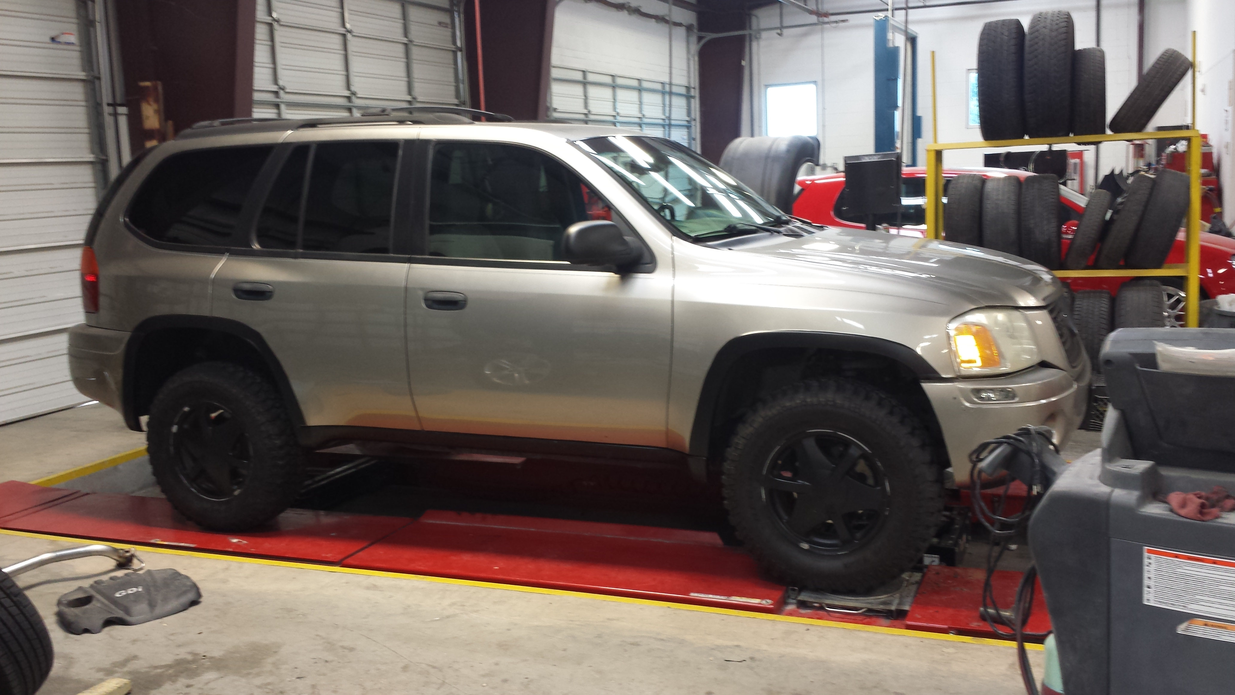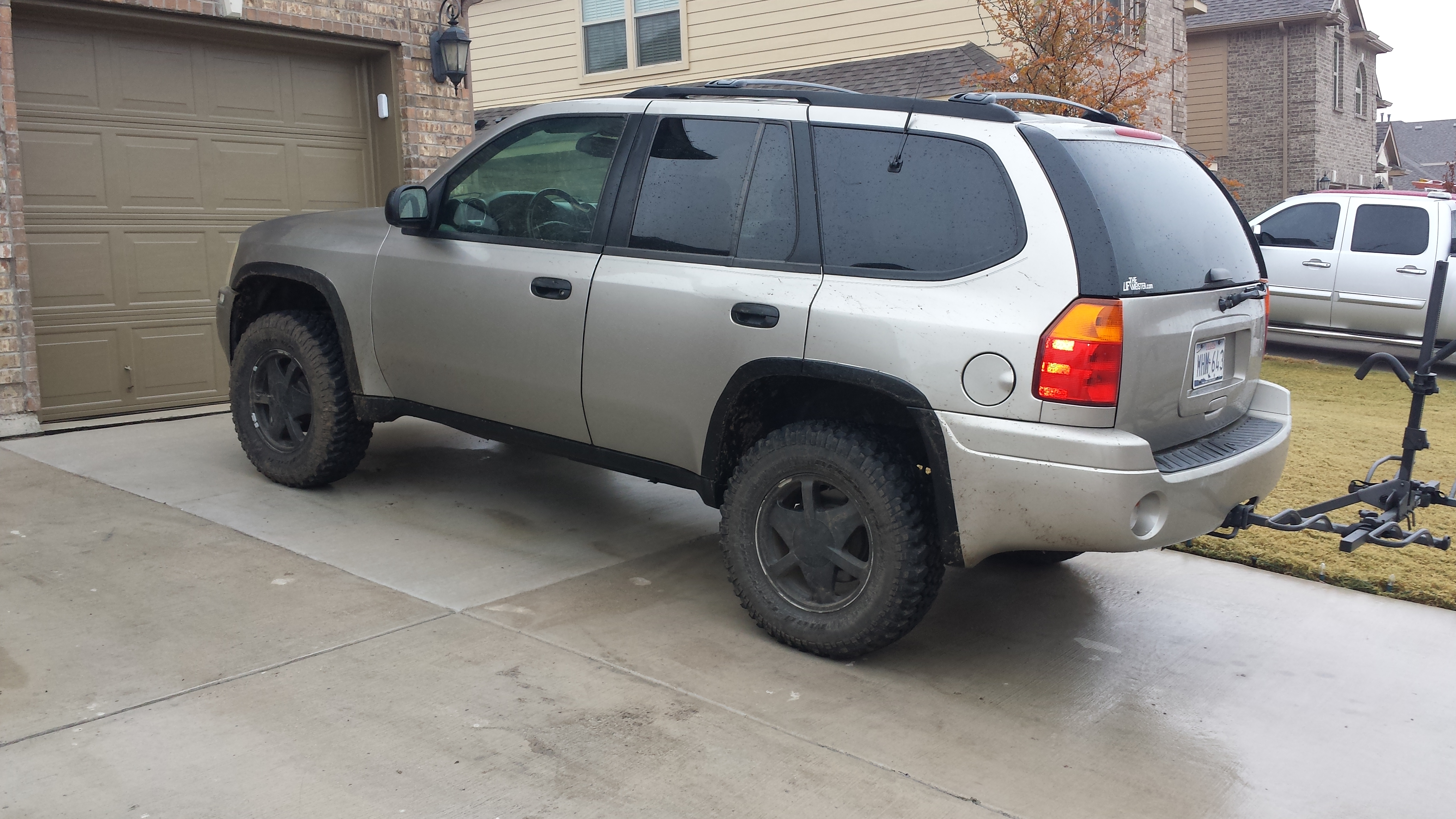 Well some more changes have been made. I put a set of Mastercraft CXT 255/80r17s on the envoy as well as a 2 inch body lift. I have about 500 miles on the new tires. Man I had no idea how loud my old mud terrains were. It drives and sounds like a new truck now. I have a JK fabricated front bumper that should be here tomorrow. I'm going to do some mock up and see if it will work. I think it will. Rear bumper next.