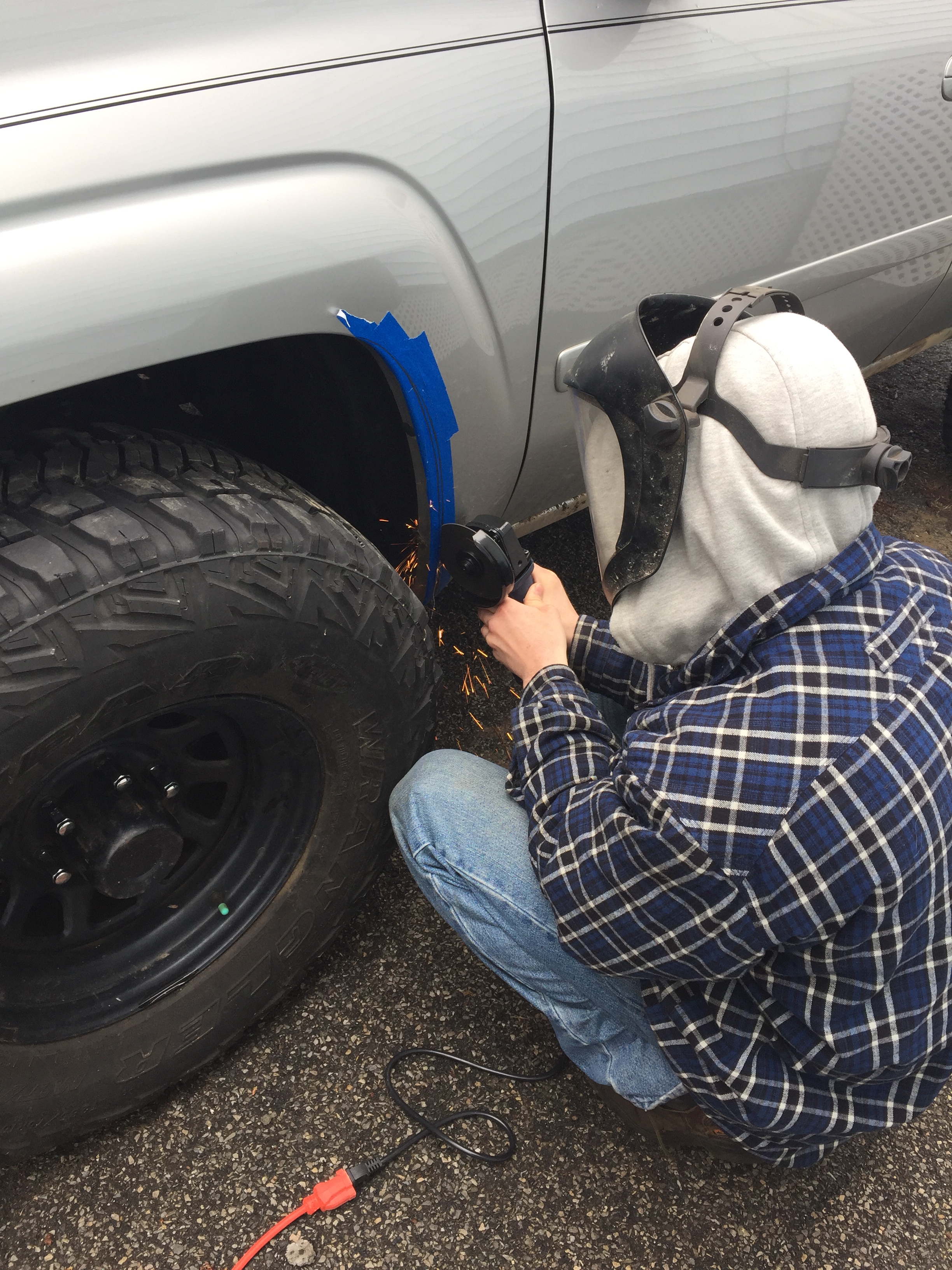 Got a great deal on some Goodyear MTR LT286/75R16 & some Pro Comp series 51 wheels from Moots1288 that I could not pass up. :woot: Needed to do some fender trimming but thanks to my good buddy Jason V7guy it was done in short order. I was unsure of the wider stance but now that I have the wheels and tires on I am digging them. :flex dirty: