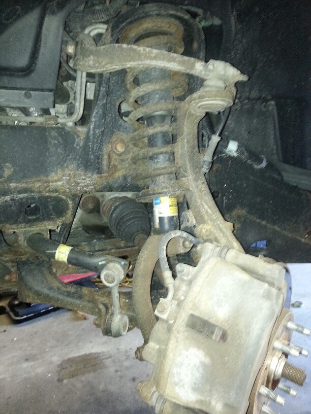 - My most recent picture and why I decided to do some upgrades. Long day at work driving to my girl friends house, I started down a slight grade into her neighborhood at 5mph. By the time I got to the bottom (a T intersection) I was doing 25 and had 3 choices a parked car, a house, or a curb with a knee wall. So I picked the curb and spent the the hour pulling my tb off a wall and changing my flat in the snow. Luckily the week prior I had the spare down to change the vent purge valve, so I didnt have to deal with the spare being stuck while in the snow. So me being the type of person I am, you cant replace stock parts with stock parts. So I have spent the last 2 months researching different things on here and other sites and my journey has begun.