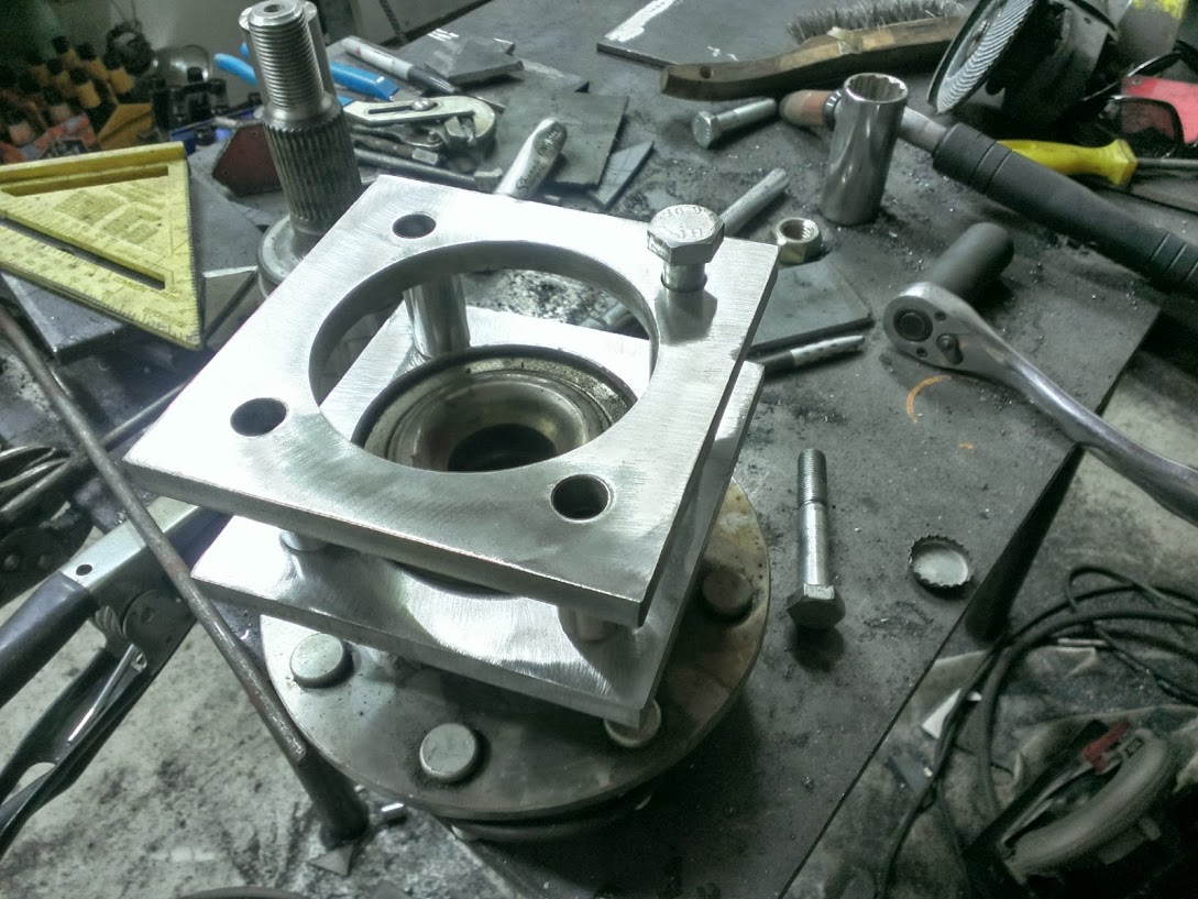 Got some time to start working on the upper A arm brackets, lil spacer put next to the misalignments to make sure it stays wide enough after welding. Also had an epiphany that I could use a hole saw to cut the rounded space for the rod end, dunno why it never occurred to me before. Looking forward to welding em on the frame tomorrow.
