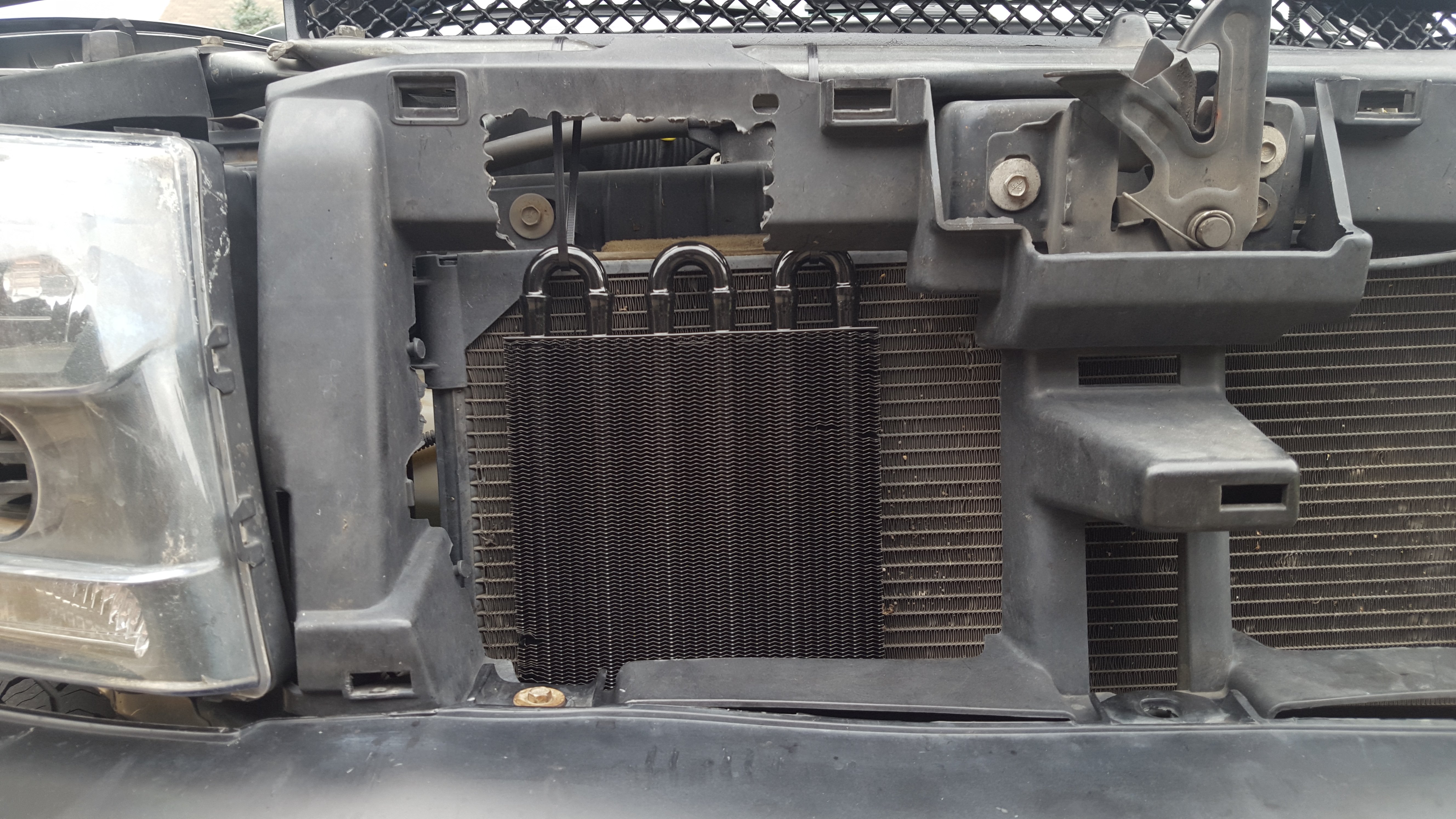 here's my transmission cooler Hayden high performance no temp gauge yet. hardest part was flaring the hose...