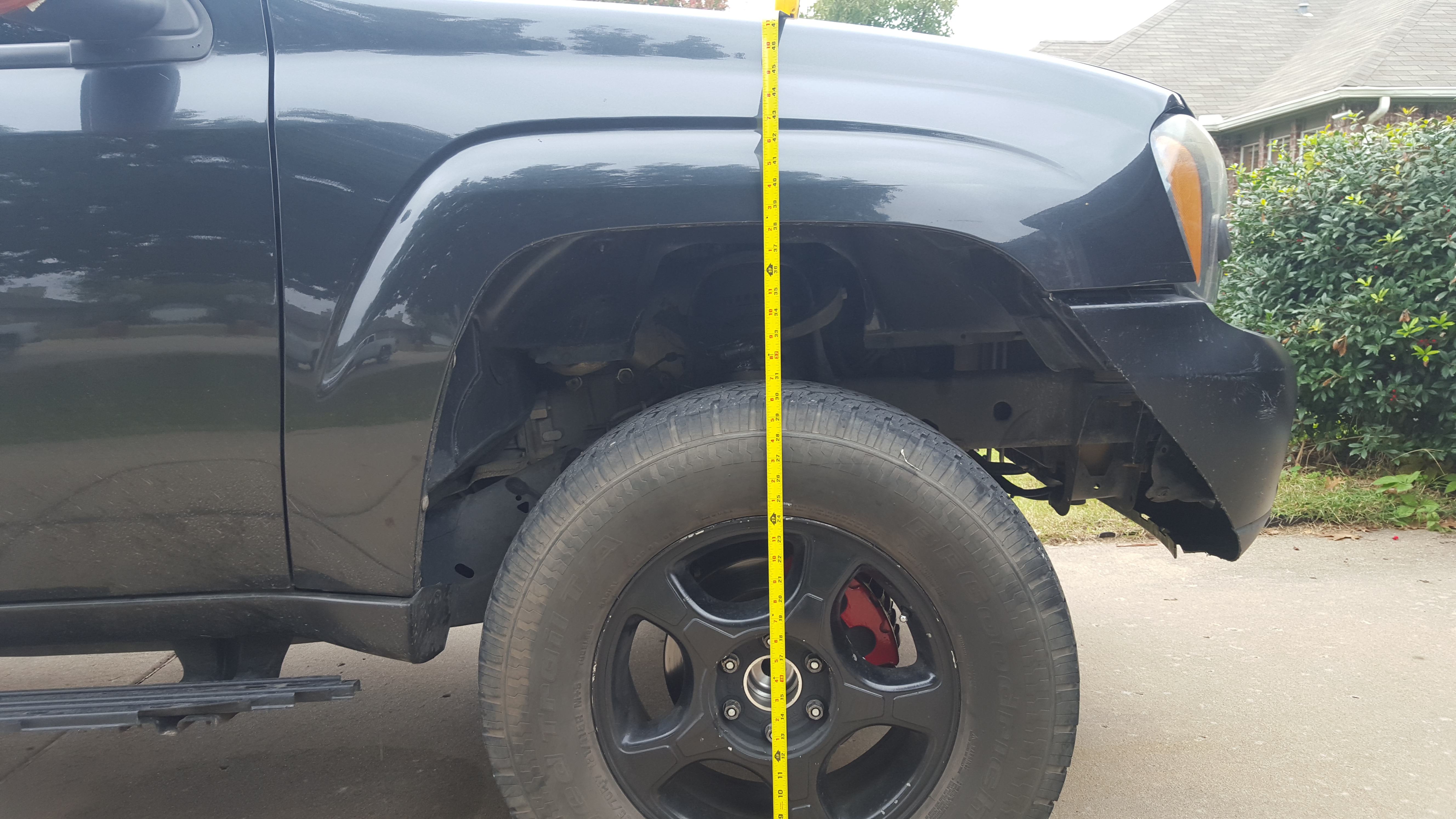 Got a few more mod's done the last week added a Hayden Trans Cooler got a set of used 265/70/r17 tires with about 45% tread all mix matched...I'm getting a new set of Wrangler Authority A/T's next week another project was I replaced my upper control arm bushings which isn't hard to do by any means just a pain in the A$$ to get the old bushings pressed out but it mad a HUGE difference in the ride quality and was also a contributing factor to my front in sagging almost 2 inches after being lifted lower control arms are next because I'm not messing with those bushings or ball joint. I also ordered a Spohn performance adjustable Panhard bar in bright red and got it installed which works and looks great!