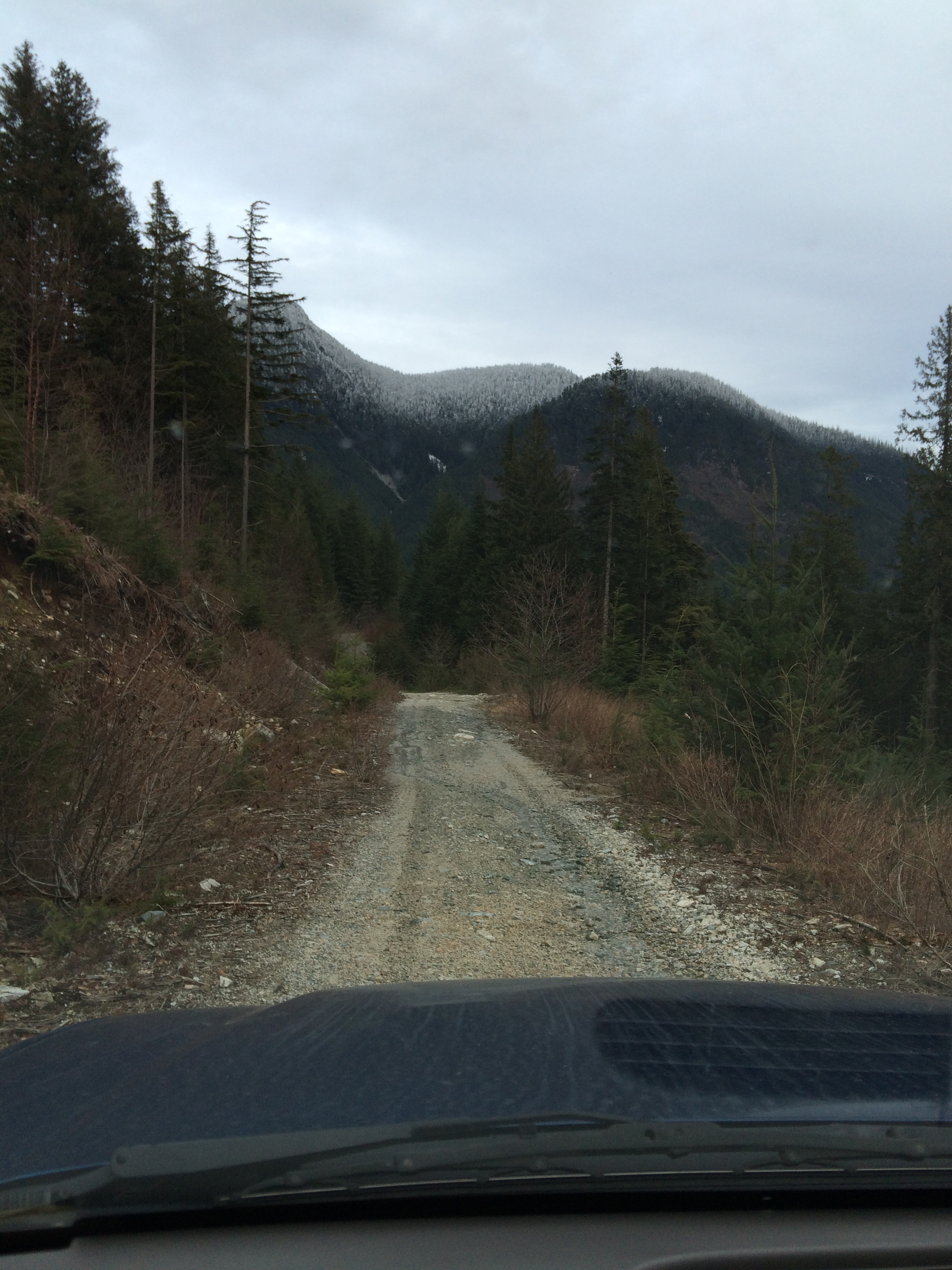 Tuesday afternoon, Mar 8th, I had about 4 hours free time before sunset, so I took the opportunity to head for a local logging road to try out my new tires. The Lost Creek/Davis Lake FSR is about 30 min. from my home via Hwy 11 and Hwy 7, then 10 km N on Sylvester Rd., a nice curvy 2 lane asphalt along the base of the mountains. Once at the FSR, you're immediately on hard packed gravel, with lots of washboard and puddles, due to our very wet weather the last few months. At the 10 km mark, the road is not in a current logging area, so not maintained at all, and becomes much rougher, with washouts and brush grown in to narrow the track to just barely one lane. I drove another 15 km, to the point where a creek had cut through the trail to a depth of about 6 ft, with vertical banks, before turning around for the trip back out. The entire trip was done in 2 wheel drive, except for 1 deep creek washout that required a right angle turn in the middle to climb out the far side, where I lost traction at low speed. On the return run through here I was able to get across in 2wd, by going just a little bit faster