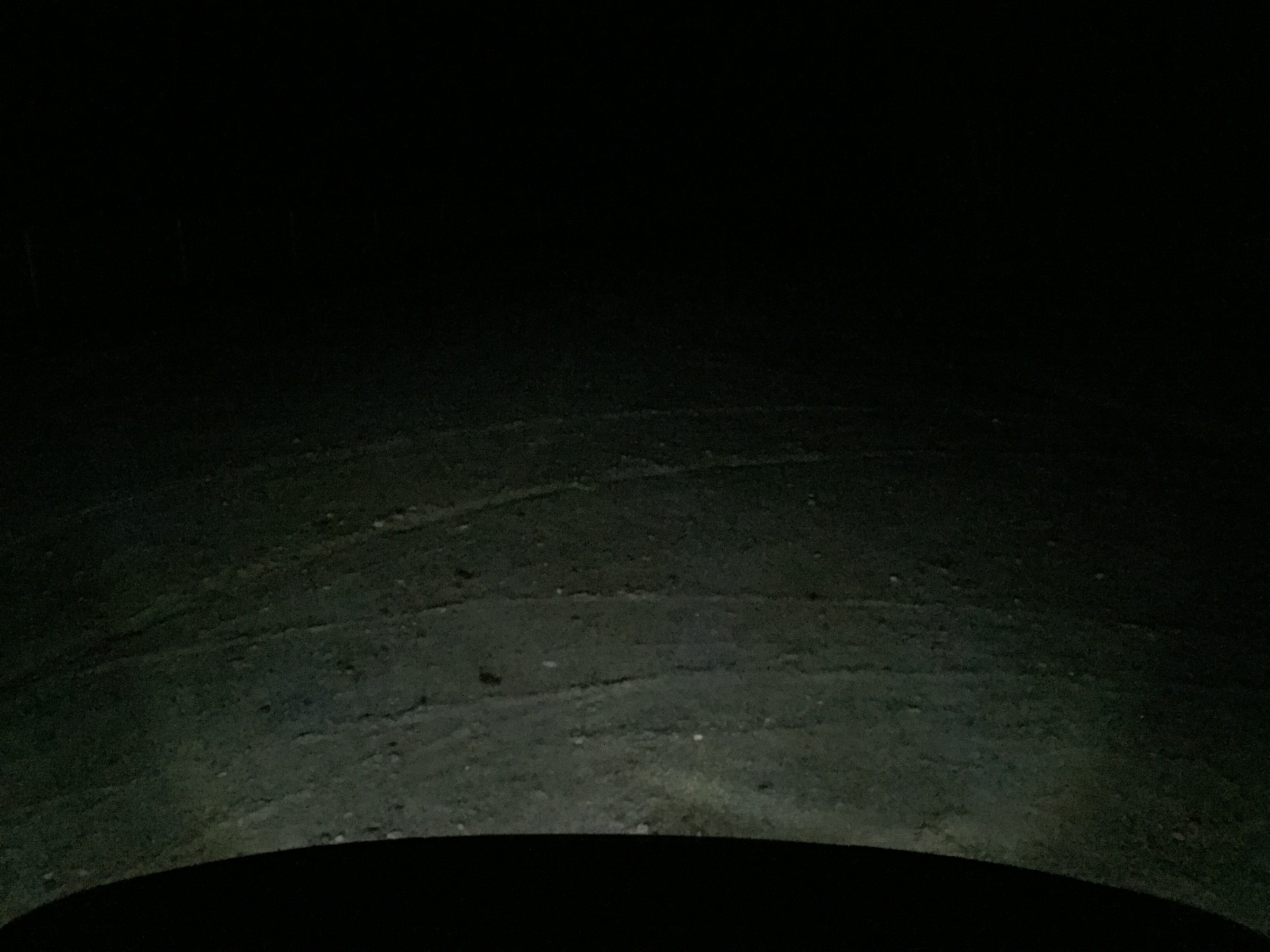 Some pictures taken on my phone of my vision at night with lights... First picture is my parking lights, which barely do anything. Second picture is of my fog lights with matchbox projectors retrofitted in with opt-7 h1 leds rated at 3500 lumens. Third picture is my headlights with the fog lights. Headlights also have Opt-7 9006 leds and put out 3500 lumens. Fourth picture is highbeam, lowbeams, and fog lights. Highbeams are opt-7 leds also. Fifth picture is all of my lights on which is apparently to bright for my phone... Last two pictures are of my license plate lights and reverse lights which are both leds.