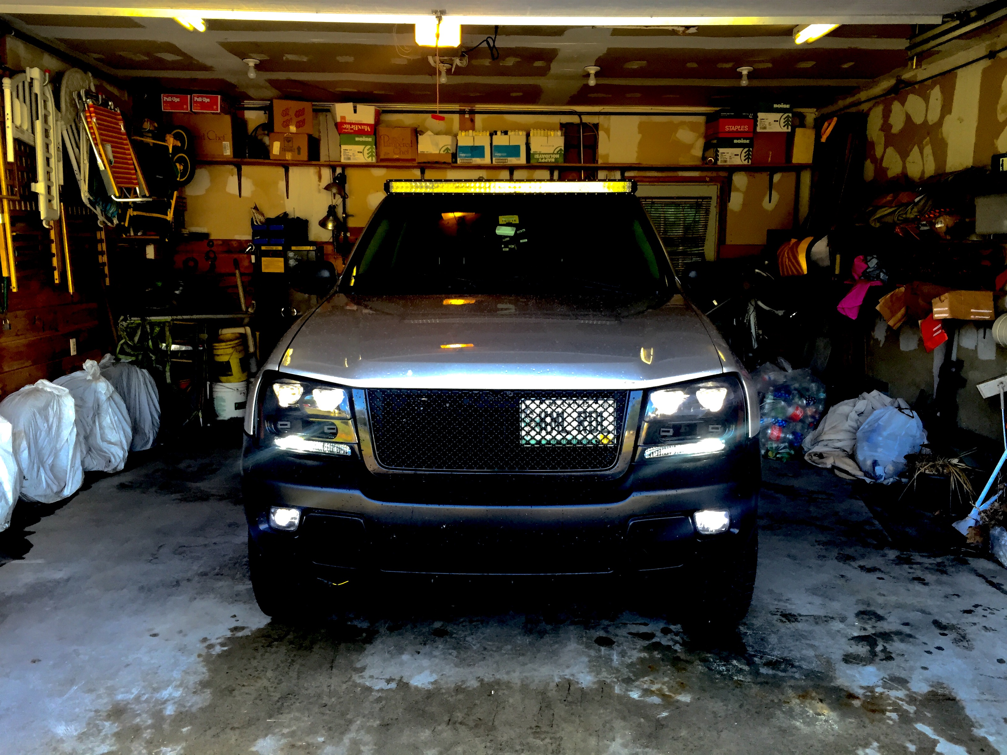 Lightbar all hooked up! It is BRIGHT... Some pics during the day with the lightbar on. Took a pic of the lightbar at night. The picture does not do it justice.. because its brighter than in the picture. The cabin glare isn't bad.. Might see if a windshield visor will help. If not Oh well... The whistle is noticeable, but I also drive around with my music at full blast all the time.. So it doesn't bother me. Overall, still lovin this lightbar.