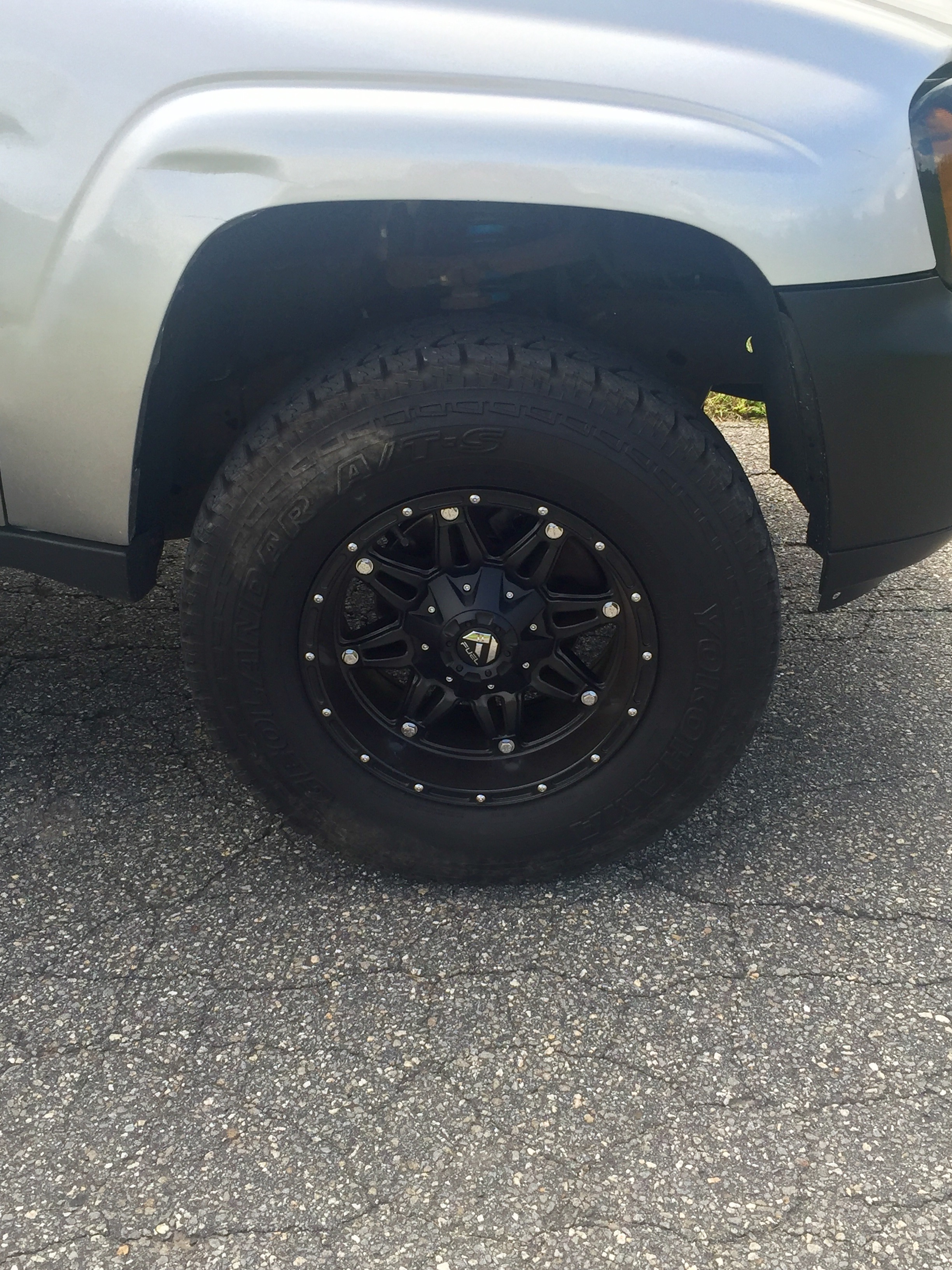 Parked the tb for the school year and picked up my new dd. Also got the rims on about a week ago. They're fuel hostage 17x9 with -12 offset. Lots of trimming had to be done when the rims went on but I LOVE the stance they give the tb now.