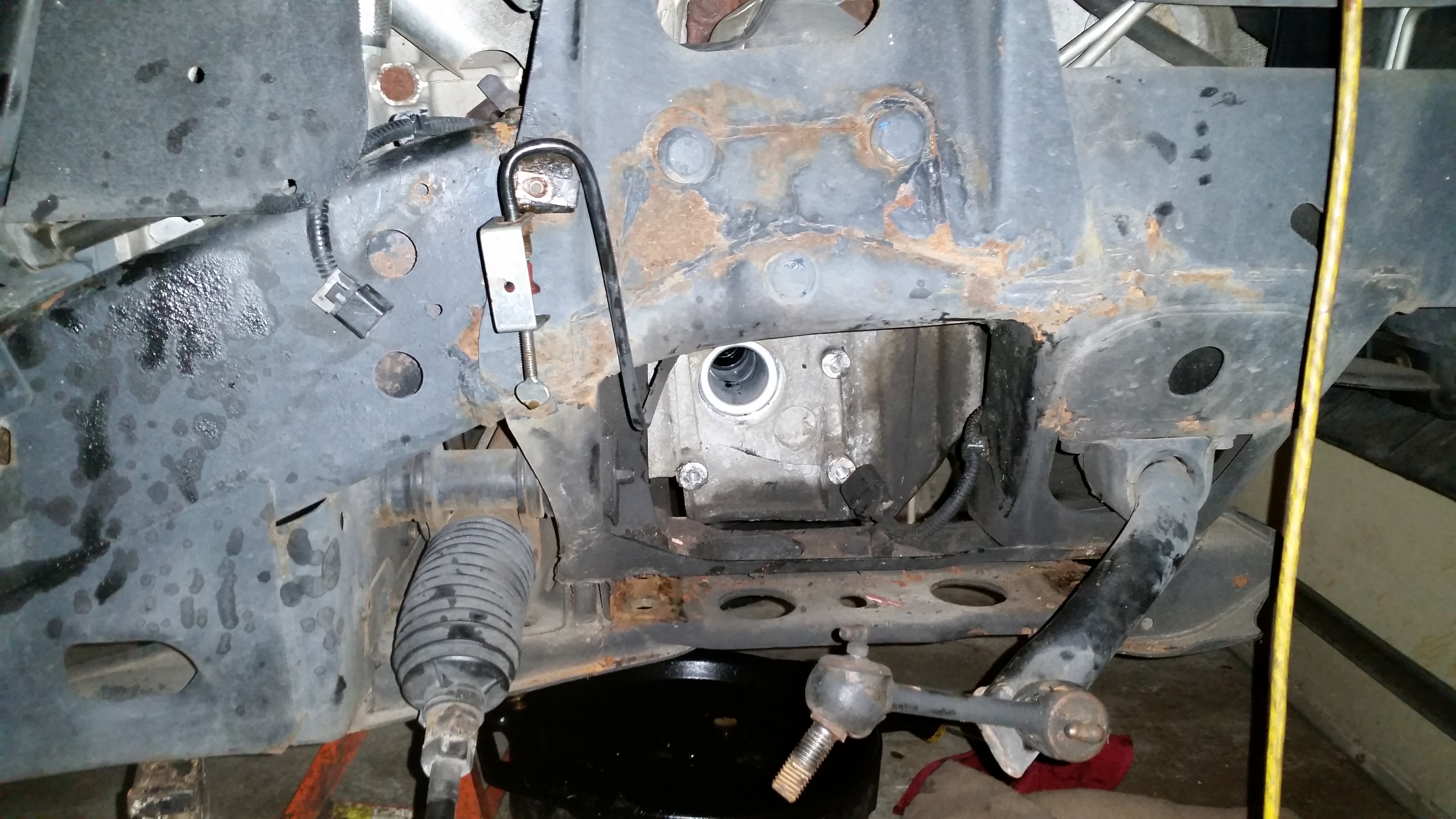 Well, it begins. Started taking parts off tonight, and the attached pics are the result of about an hour and a half or so of teardown. As of now, I'm thinking of pulling the pan to swap it, but damn.....That hole where it is looks so tempting that it would fit. Lol. I guess I'm debating the pan swap, the out the top method, or the cut the frame and reweld it method. Debate, debate, debate...Sigh. And for those of you who will ask, I'm replacing all the A arms, knuckle, wheel bearings, bushings, steering rack and ball joints.....so it's all coming out.