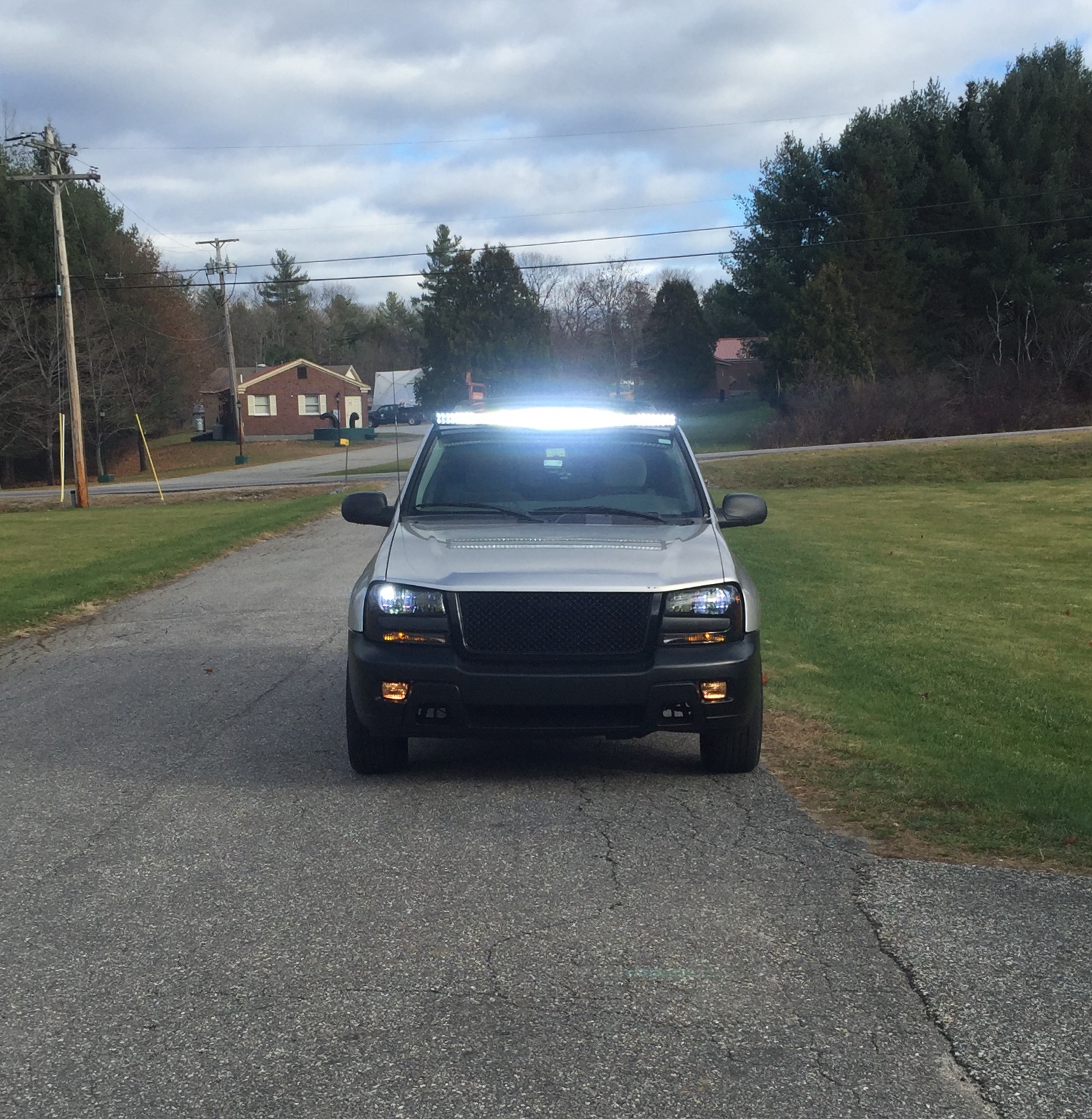 Lightbar all hooked up! It is BRIGHT... Some pics during the day with the lightbar on. Took a pic of the lightbar at night. The picture does not do it justice.. because its brighter than in the picture. The cabin glare isn't bad.. Might see if a windshield visor will help. If not Oh well... The whistle is noticeable, but I also drive around with my music at full blast all the time.. So it doesn't bother me. Overall, still lovin this lightbar.