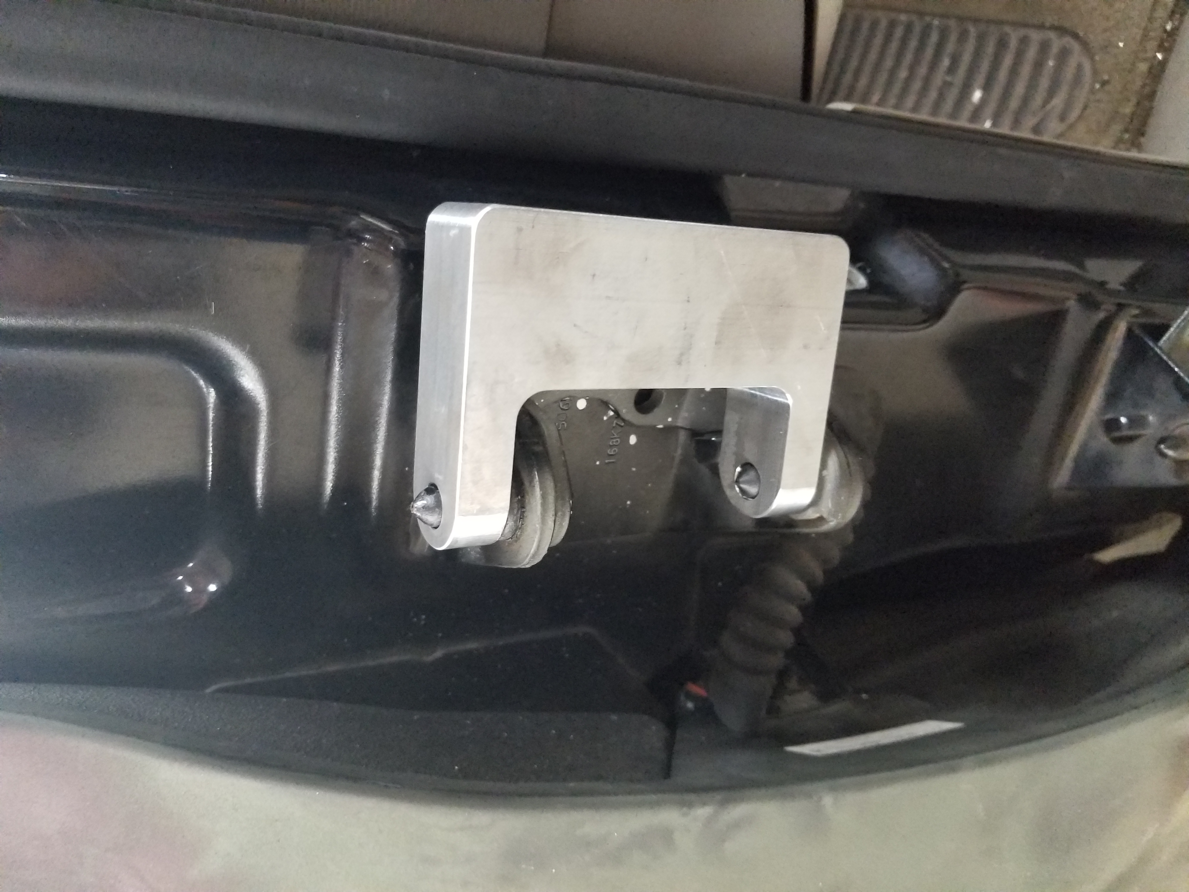 Best we could do. Bends are hard. For the latch we used a 5/8" spring latch, welded to the door, and used a piece of square tubing with three holes in it mounted in place of the door striker.