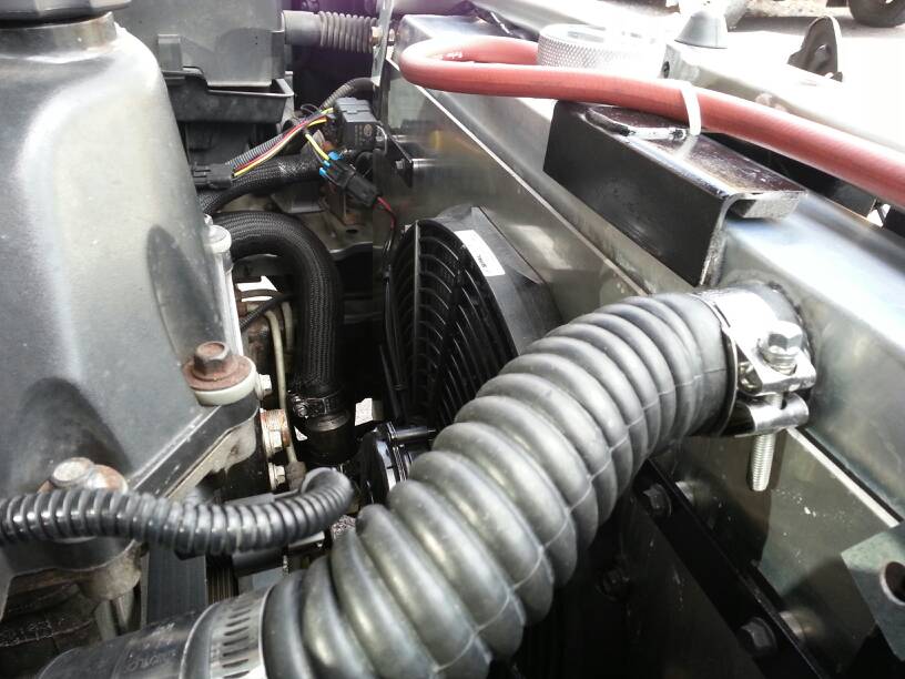 The way I rigged the shroud on the rad, it's only spaced back like half an inch from the core. I did my best. Anyone got any thoughts, other than just get better fan(s)?