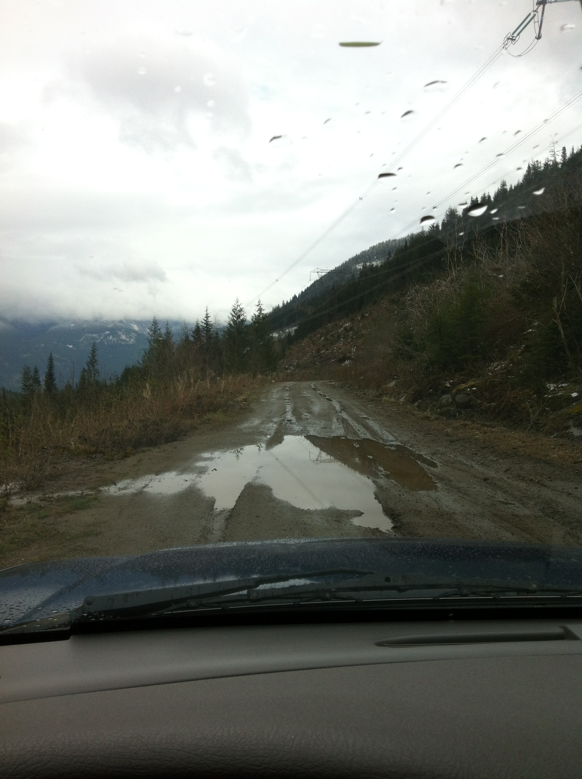After having some repairs and a 2.5" lift/level, Z71 springs, and BDS 55619 shocks installed yesterday, I just HAD to get out and try them out, though no one else was available to go, so this was a solo run up the same road system we had explored back at the end of Jan. The weather was very similar, drizzly and overcast, though a little warmer than 2 1/2 months ago. I explored a couple of side trails that were bypassed on the original trip, and both dead-ended within 3 or 4 km, one at a washed out bridge, and the other at a rockslide with more boulders than I cared to move by myself.