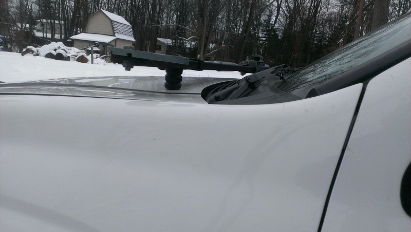 That said, it does look good from the outside of the vehicle. However, what it doesn't look like is a functional mount. From the looks of it, to remove it on the trail you will have to completely unbolt it from the hood. It doesn't look like it would be a very user friendly set up.