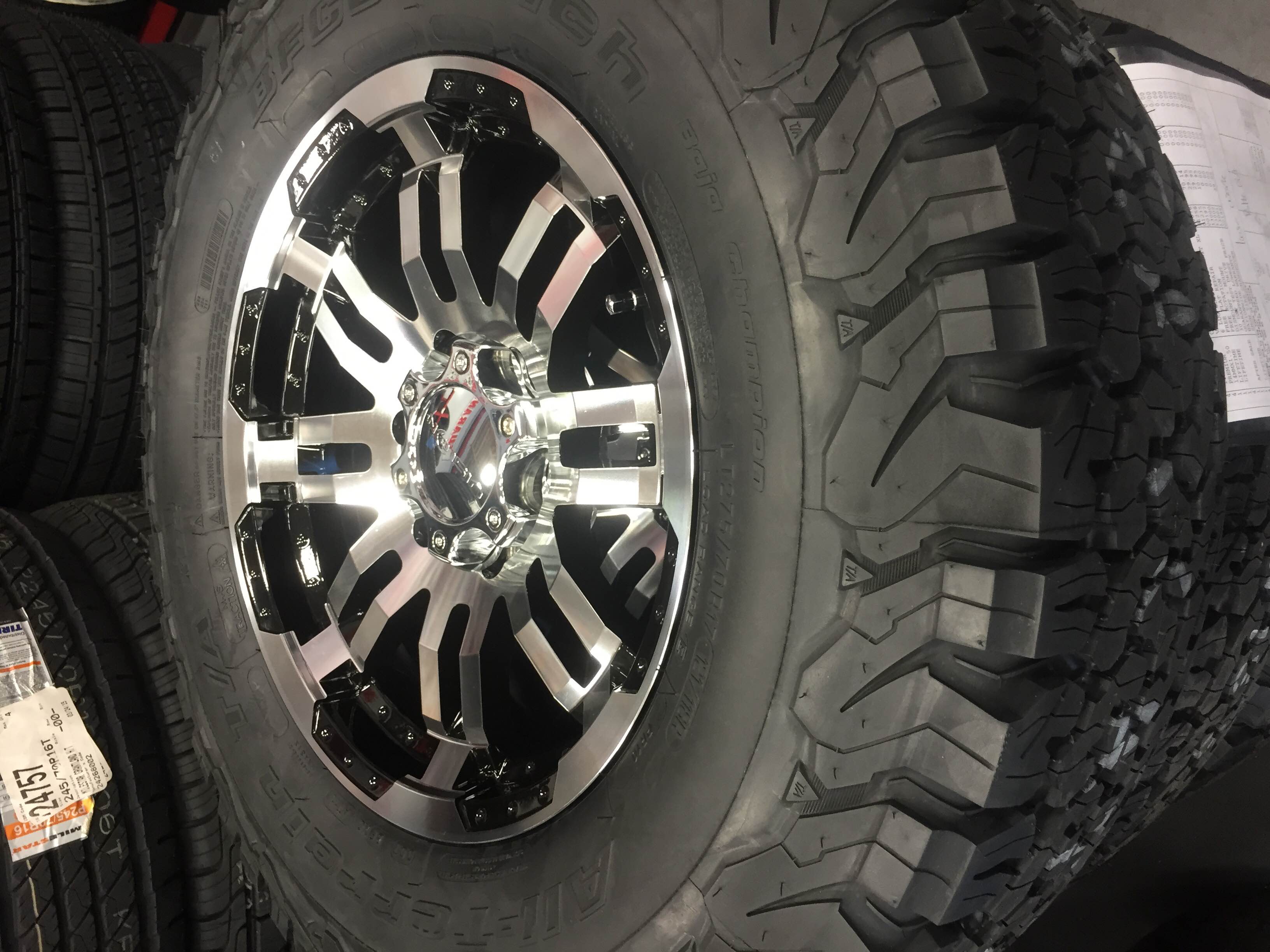 Just picked up my new wheels/tires today, BFG KO2 275/70R17 (32.2"). Figured id start off my review thread by my initial impression of the physical design/feel of the tires. The rubber definitely feels thicker/stiffer than the original KO's. The sipes run from top of tread completely through to the base of the tire, seems as if its going to handle pretty well in rain/snow (i live in MA so ill give my thoughts on both conditions as they come up). the spacing between the tread seems slightly larger than the KO's which looks like it will dislodge mud easier. Overall very good looking tire, pretty aggressive for an all terrain. I should have these installed later this week, so ill post some short term impressions few days after. Then i will post long term as well as off road impressions to give my thought's on various terrain.