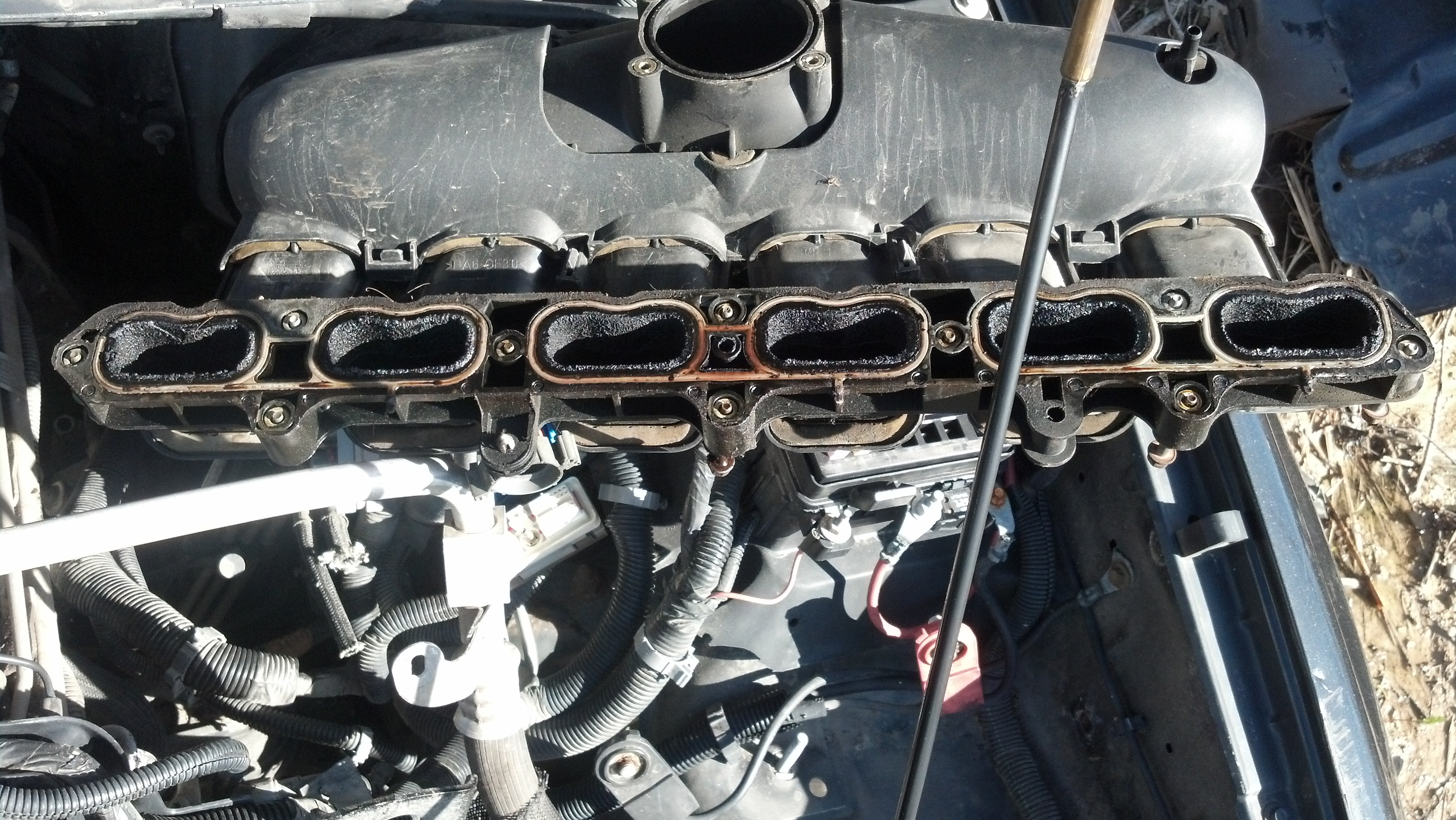 Hit the junk yard this morning to dig into an EXT Envoy. #2 injector is leaking on my rig, loading up and missing at idle so I pulled the intake on the junkyard one. $5 for each injector, but that intake was a PITA to get off. Thankfully the front accessory drive was already gone. Also nabbed one of the 17s off of it, my steel spare is junk, rust has eaten it to nothing.