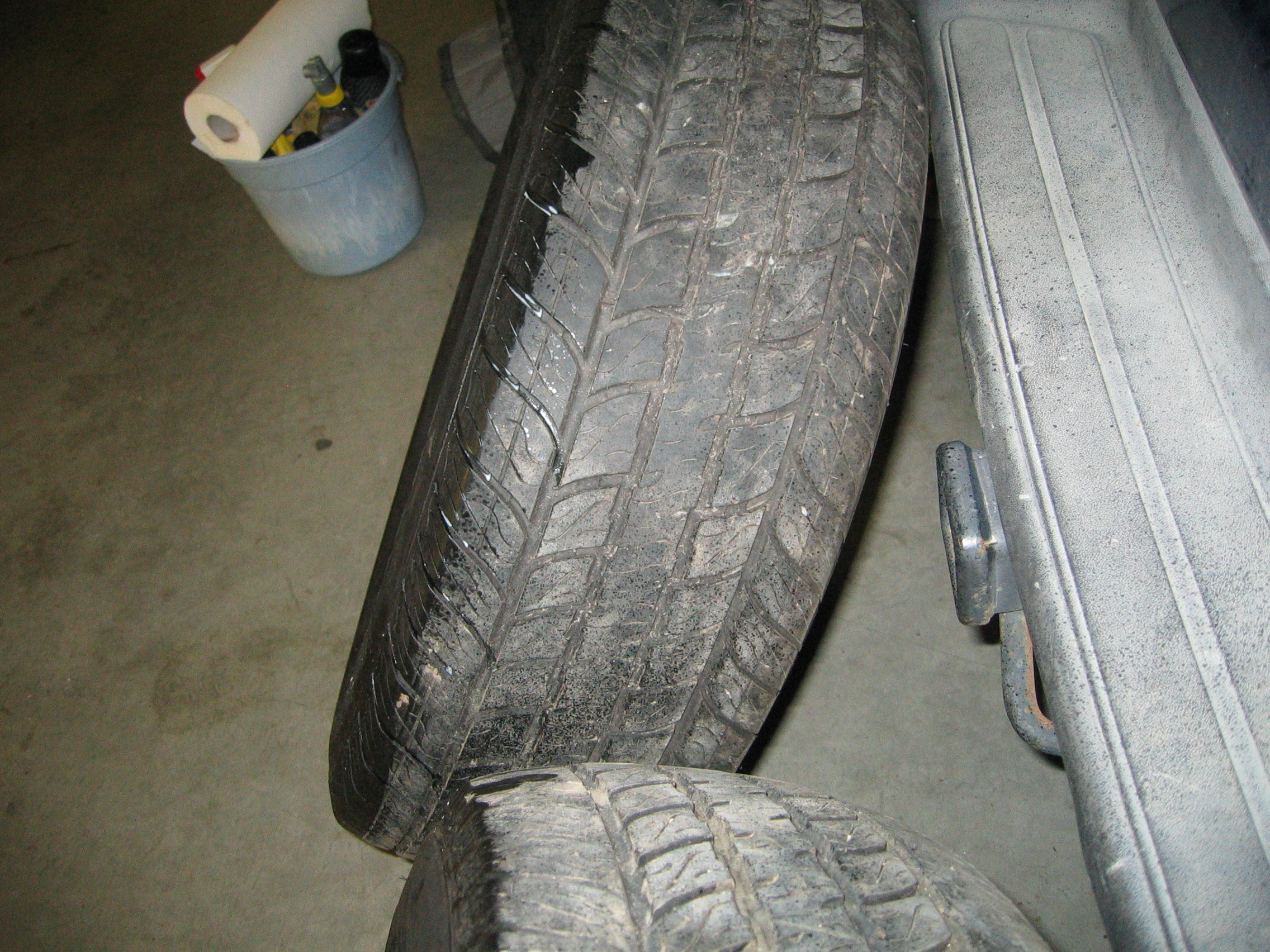 Regarding the post at the top of this page, I finally managed to find a replacement rim for the one that got bent that day, in fact I found a pair of rims, complete with decent tires, after a frustrating week of searching. I could find Envoy wheels everywhere, at pretty cheap prices, but no wreckers within a 100km of me had my style TB wheels. I had almost resigned myself to buying a full set of the Envoy wheels, and while checking around for the best deal on those, I came across this pair of the right wheels, with Motomaster Total Terrain tires at 75% tread left, for the grand sum of $240. Score!