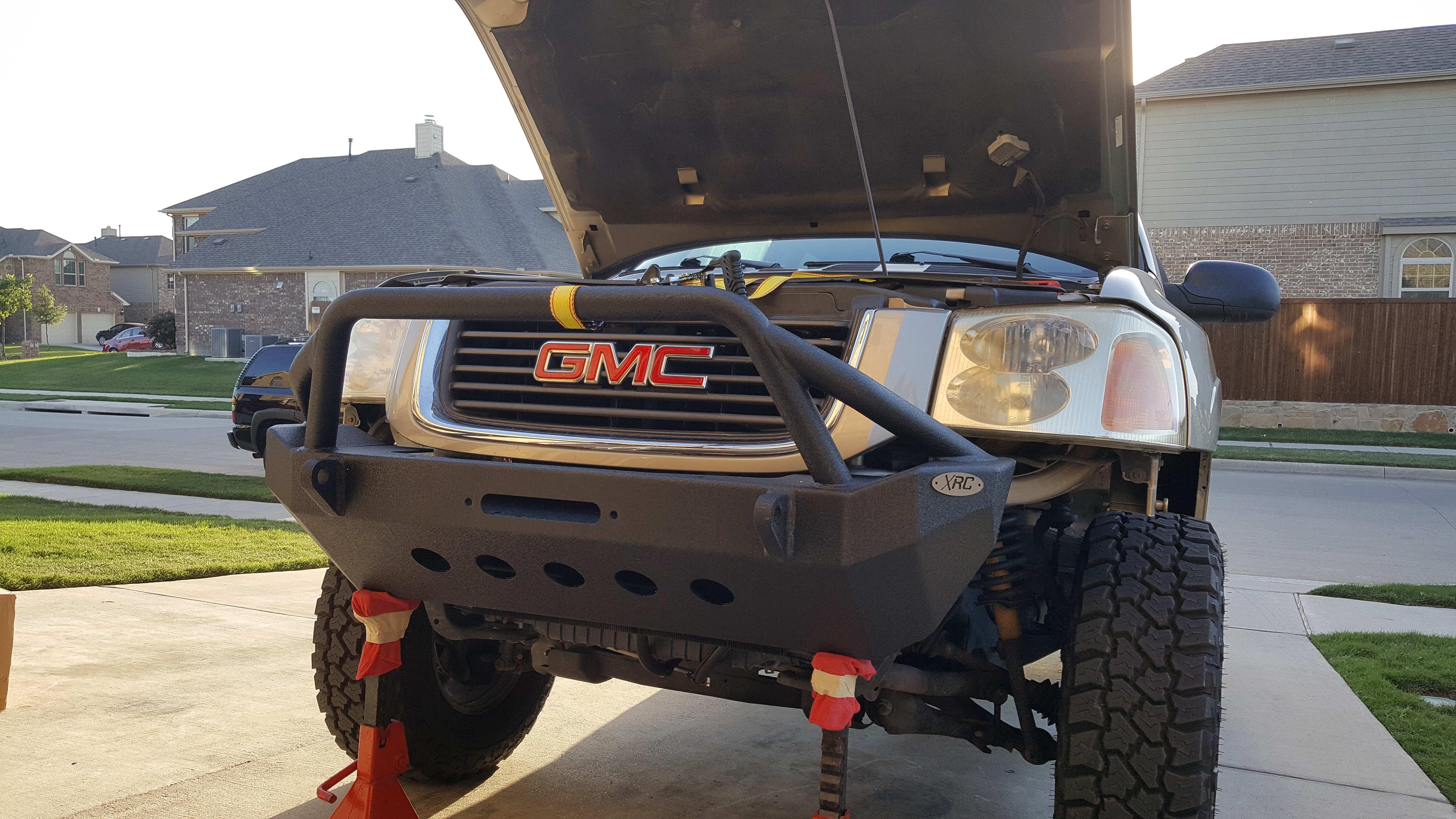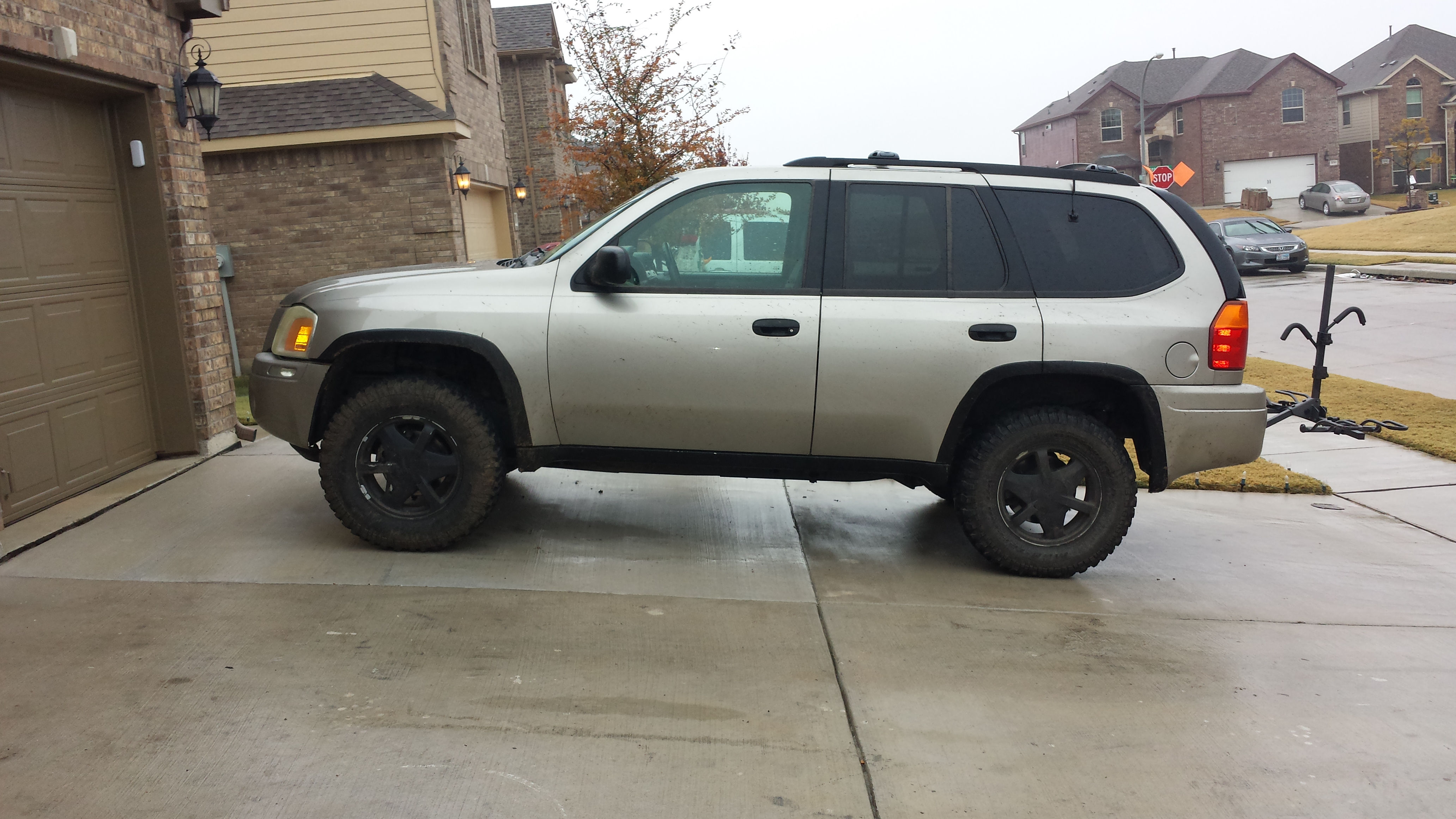 Well some more changes have been made. I put a set of Mastercraft CXT 255/80r17s on the envoy as well as a 2 inch body lift. I have about 500 miles on the new tires. Man I had no idea how loud my old mud terrains were. It drives and sounds like a new truck now. I have a JK fabricated front bumper that should be here tomorrow. I'm going to do some mock up and see if it will work. I think it will. Rear bumper next.