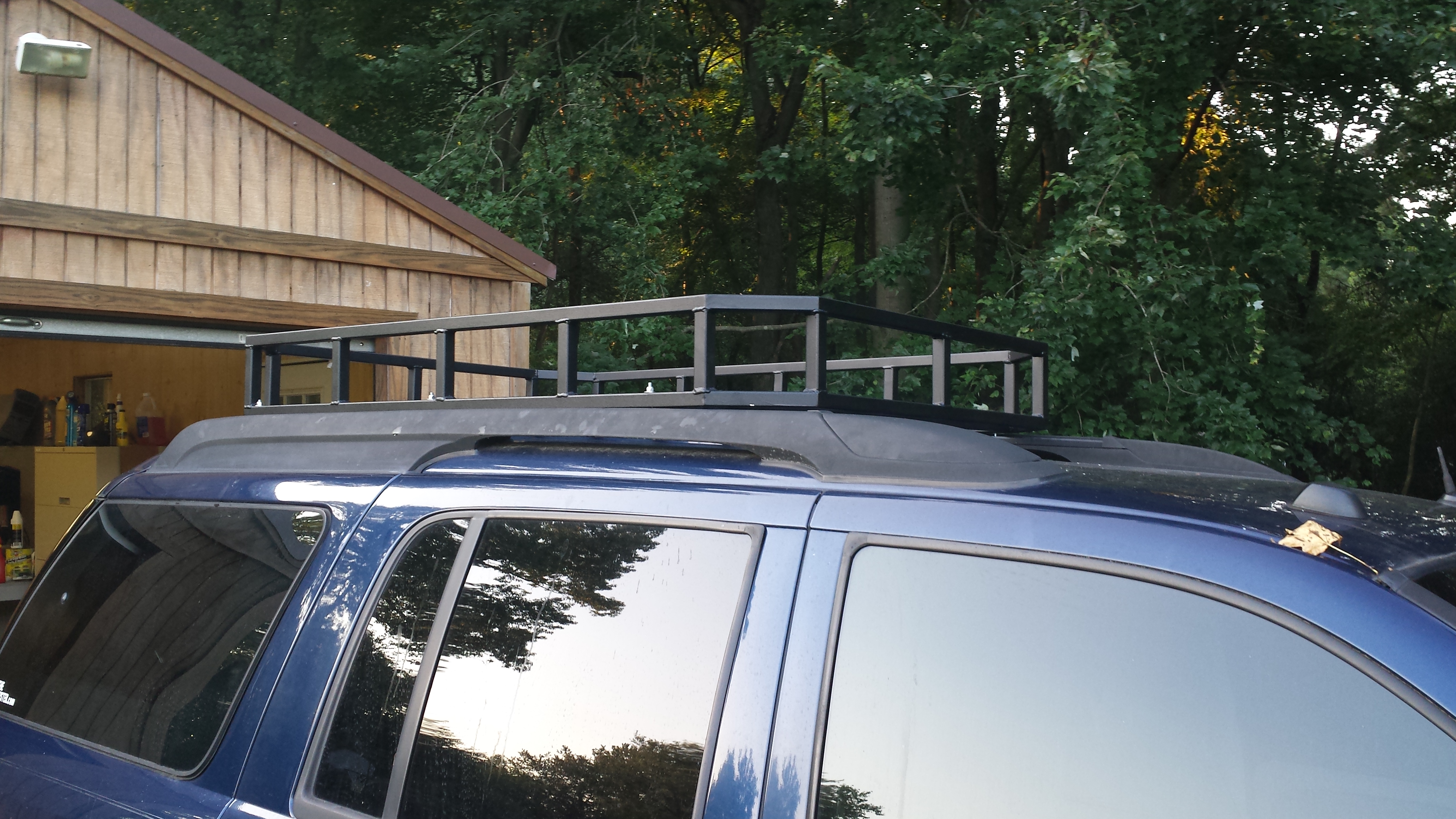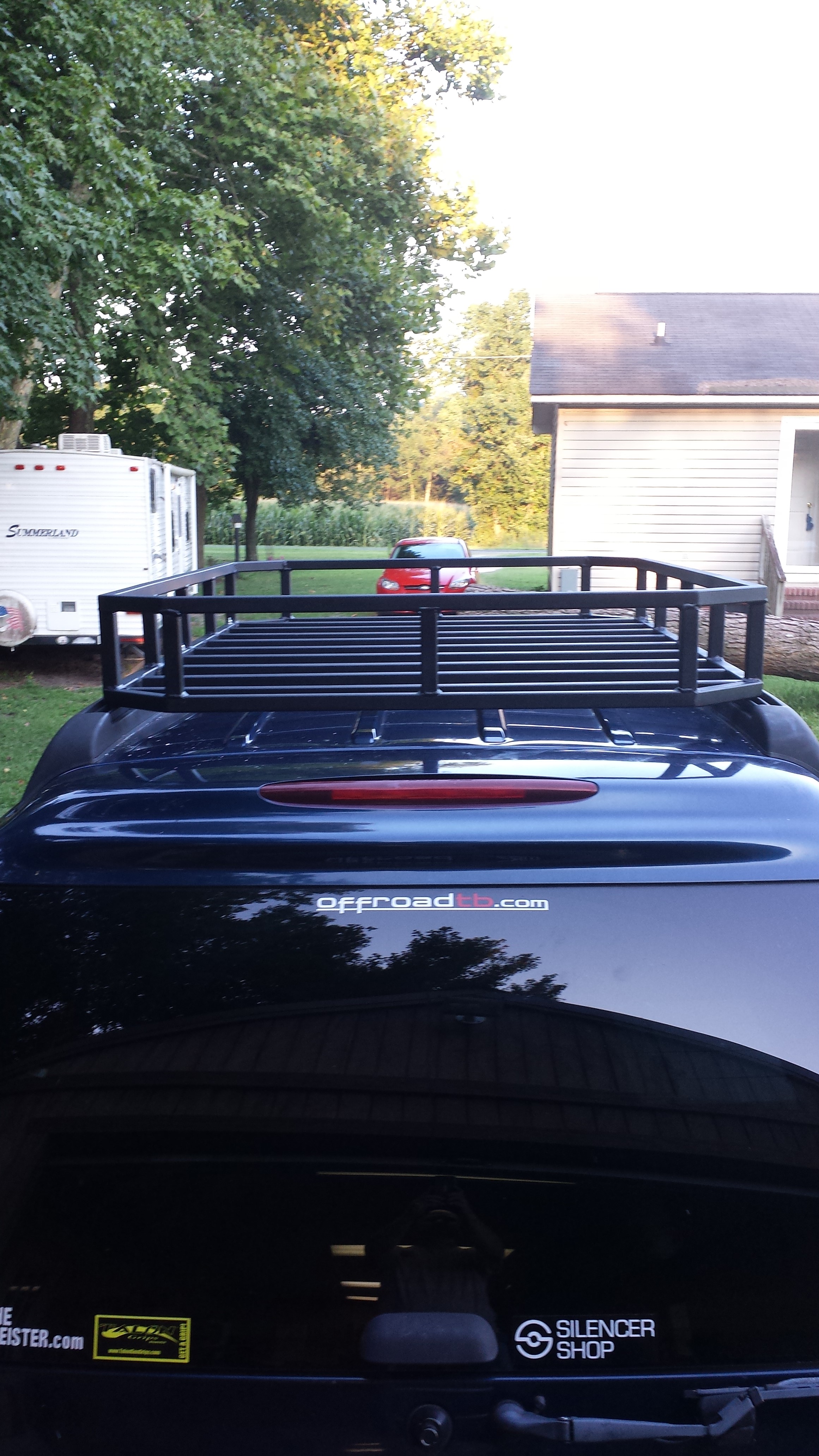 I picked up my new, custom made roof rack Friday. I painted it and got it mounted last night. I love the look and it's strong and light. It's made from 1"x1" aluminum square tube and fits the stock roof rail width. It didn't come with any mounting provision so I used Roadie's approach - through the stock rails. If anyone is interested in one, I'll see about a possible group buy. They are cheaper than a Thule or Yakima.
