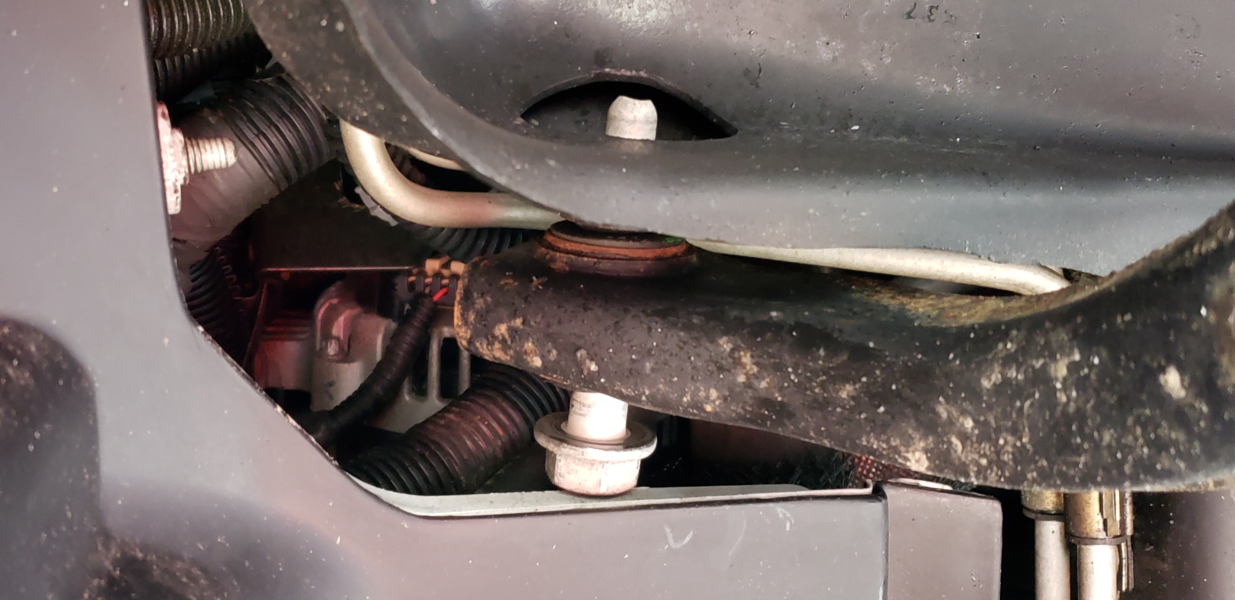 I tried to do this without cutting. Had success with the first 3 bolts. Ran into this on the last one. Lol. Oh, well. Time to bust out the sawsall. Thought about cutting the bolt shorter, but I have a feeling I might have to undo this again anyway.