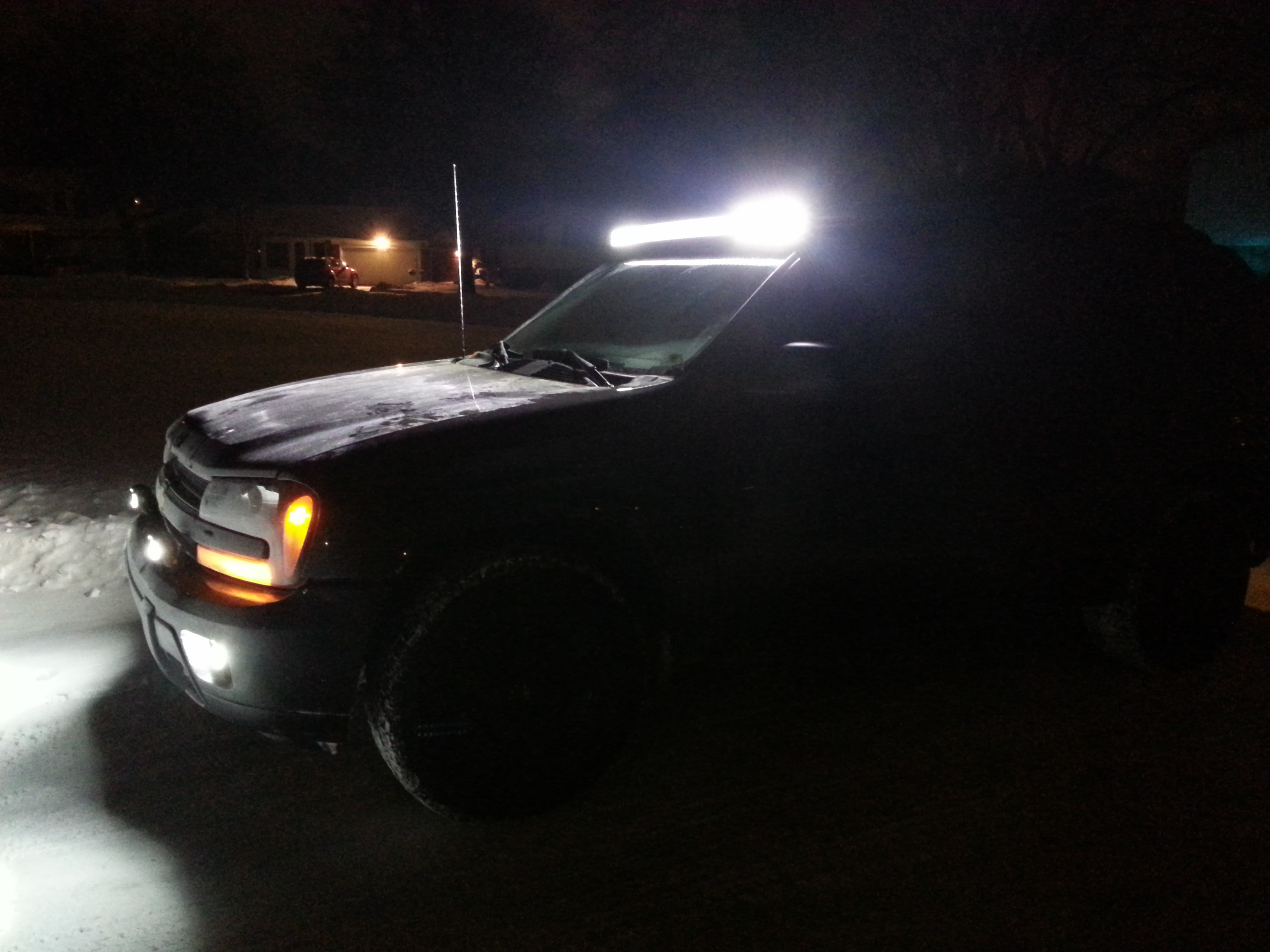 After installing 50" LED light bars on a couple of my friend's trucks using aftermarket brackets and seeing how well they perform, I knew I had to have one for my Trailblazer. Only issue was that there are no aftermarket brackets designed to mount a light bar to the roof of a Trailblazer...So I decided to design and build my own. The brackets turned out very well and are very solid. Compared to some aftermarket brackets I have seen that are not very solid and allow the light bar to bounce quite a bit, these brackets don't budge.