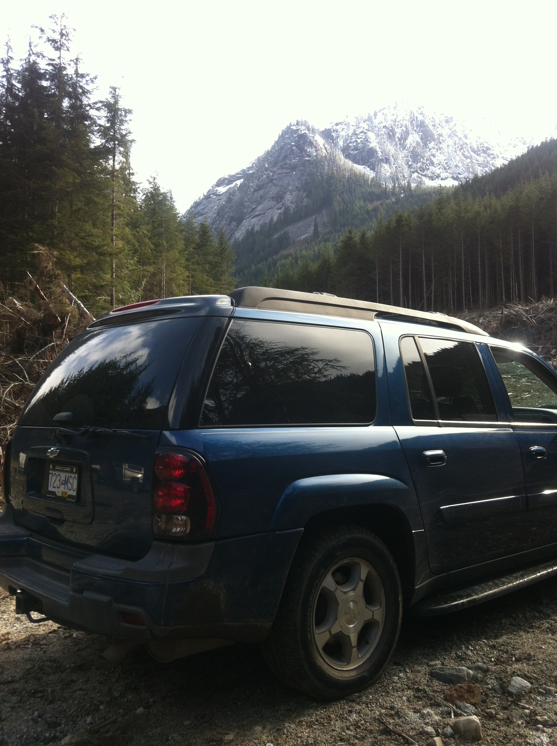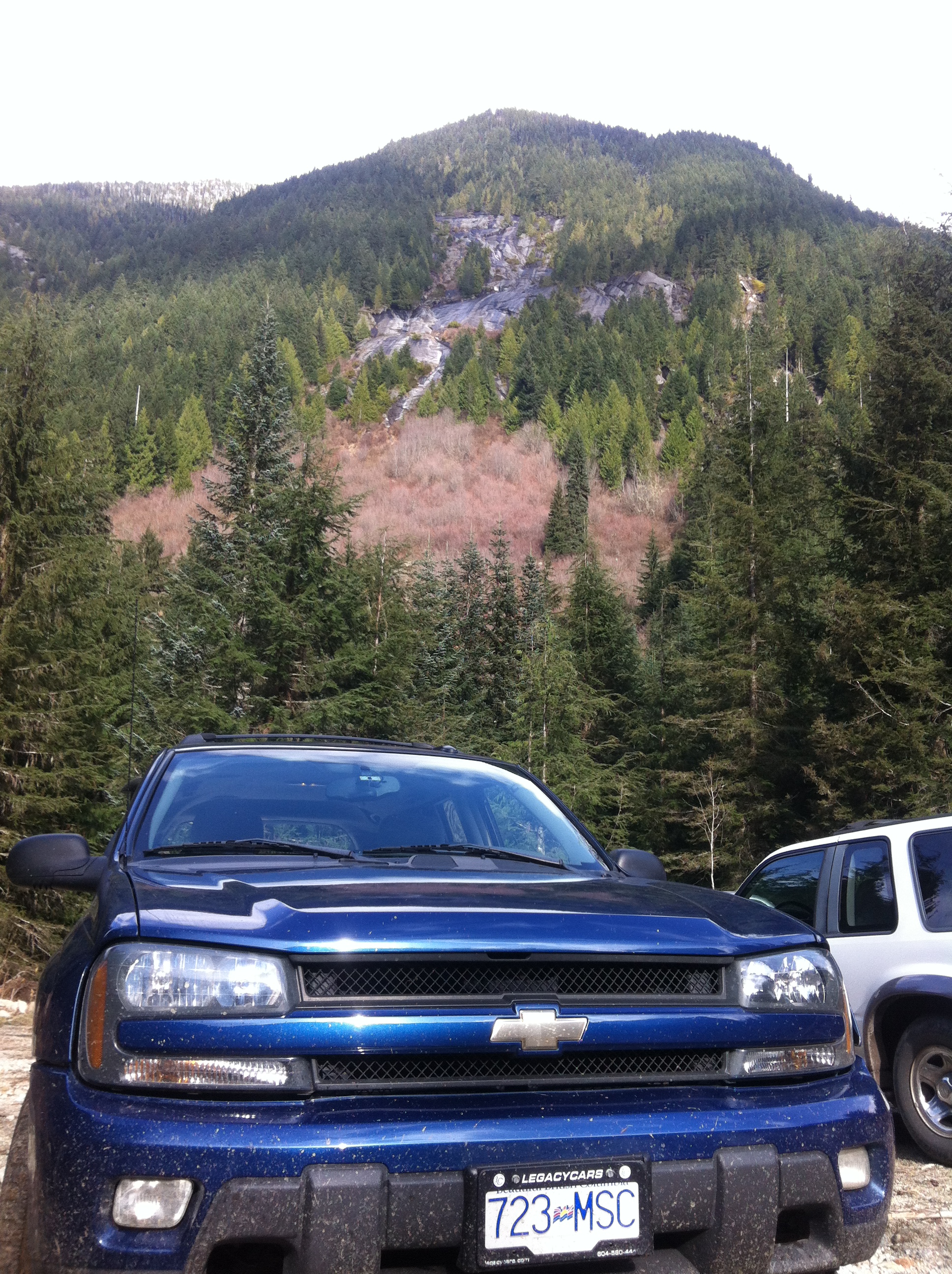 On Sat., Apr. 4th, myself and 3 buddies, + 1 wife, did a run into a FSR that we hadn't been to before, just to check it out, and spend a few hours around a campfire in the evening. Our little convoy consisted of my TB, Jason's 2wheel drive 2dr Explorer, and Bill's Chev 1500 4x4 p/u. The valley we were headed to is a tributary of the Chilliwack River, about 1 hour's drive from our homes, and pavement all the way to the FSR turnoff. Every campsite in the Chilliwack Valley was crammed full, but once we started up the Centre Creek road, we had it to ourselves, except for a few ATVs.