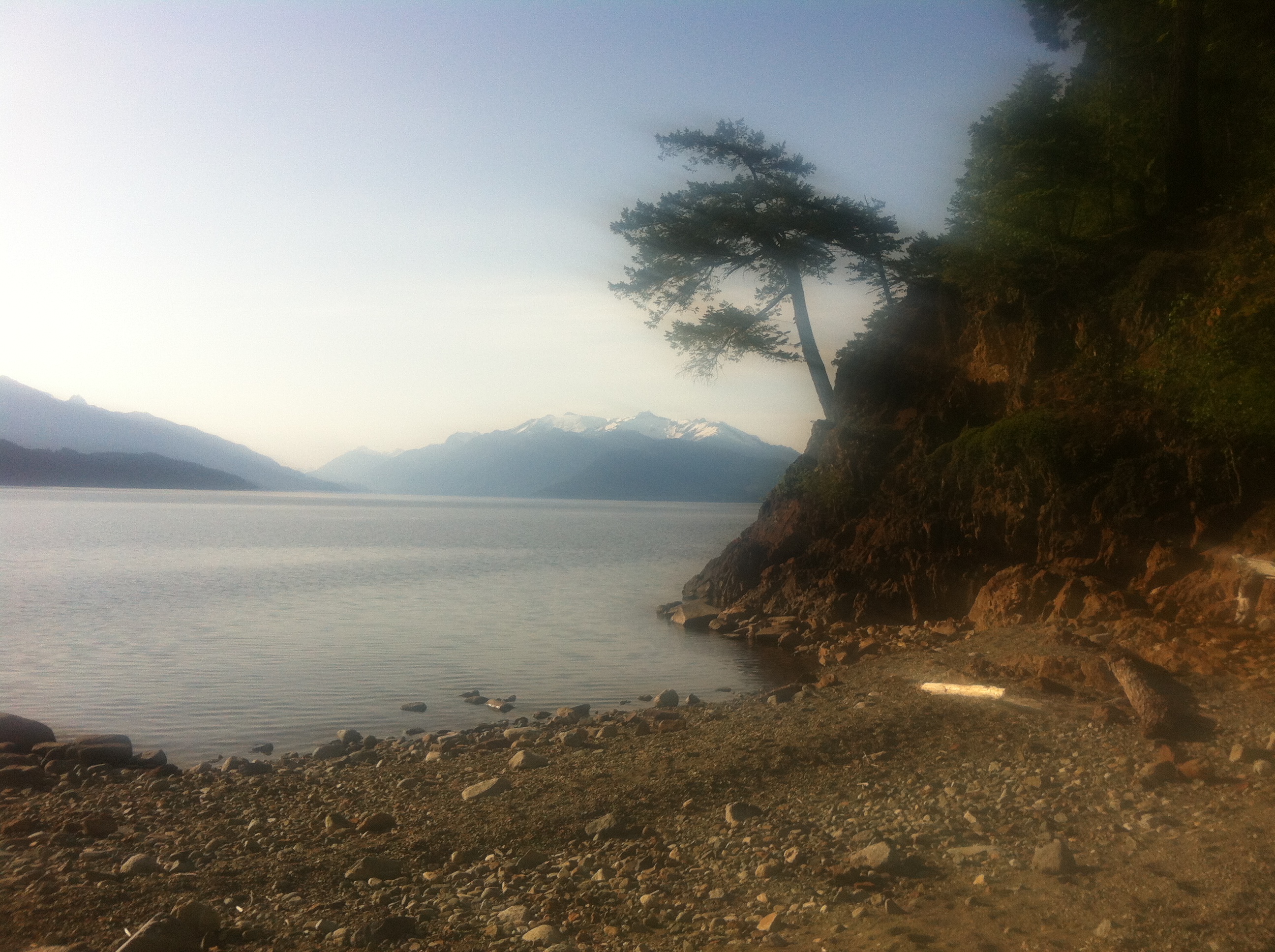 I chose the East FSR to start from, as I know a great lookout point that gives a splendid view of the lake, the surrounding mountains, and Long Island in the middle of the lake. The main FSR in is an easy 1.0 on the trail scale, but the 6 km up to the lookout is a bit more challenging, about a 2.5, with lots of cross ditching to prevent washouts, a few small mudholes, some rocky sections, and is narrow and closely lined with alders to pinstripe your paint, in some areas.