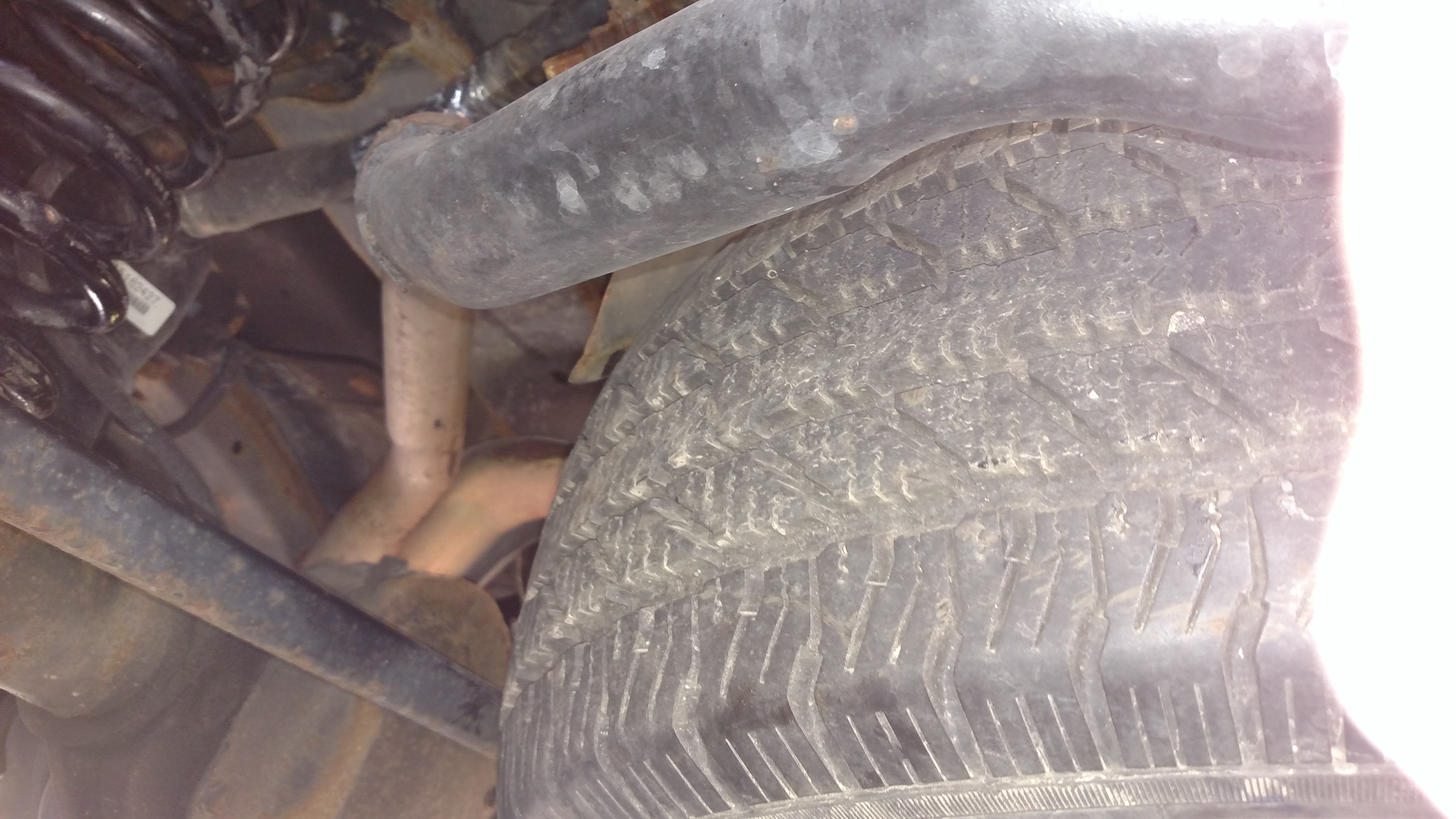 Like this, I have plenty of clearance around the stock spare(removing it soon) and over the axle. Don't let any muffler shop tell u it cant be done. I do know having the body off made for an easy install and weld up.
