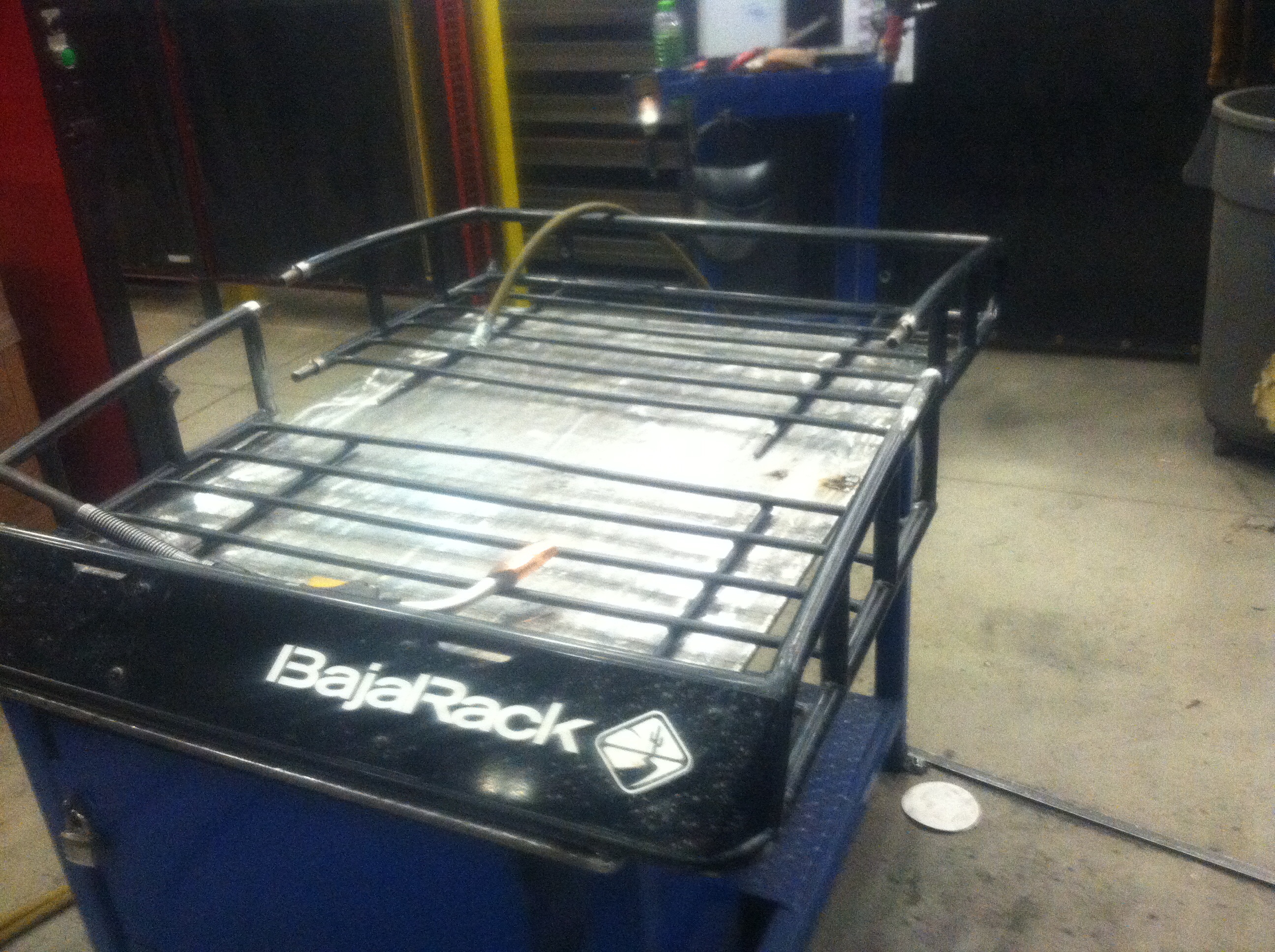 I got james' old bajarack off of him, and it needed to be put back together. If anyone remembers he basically cut it in half to act as a wind fairing in front of his roof top tent. All I did was put pieces of .75 od tubing inside to give the thing some strength and hot glued it. Not really "fab" but I did weld a good bit on it. And also, sorry about the blurry pictures, I recently discovered the plastic film over the lens that comes on the thing when it's new....my life is efffing clown shoes