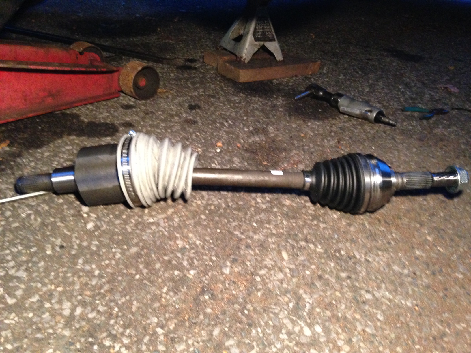 Today I took the lead from V7GUYs universal axle boot write up. This is the second time within a year I'm replacing the driver's side CV (boot tear) and remembered his build page. I believe there is a discussion on Silicone vs. Neoprene boots out there too. I went the silicone route.
