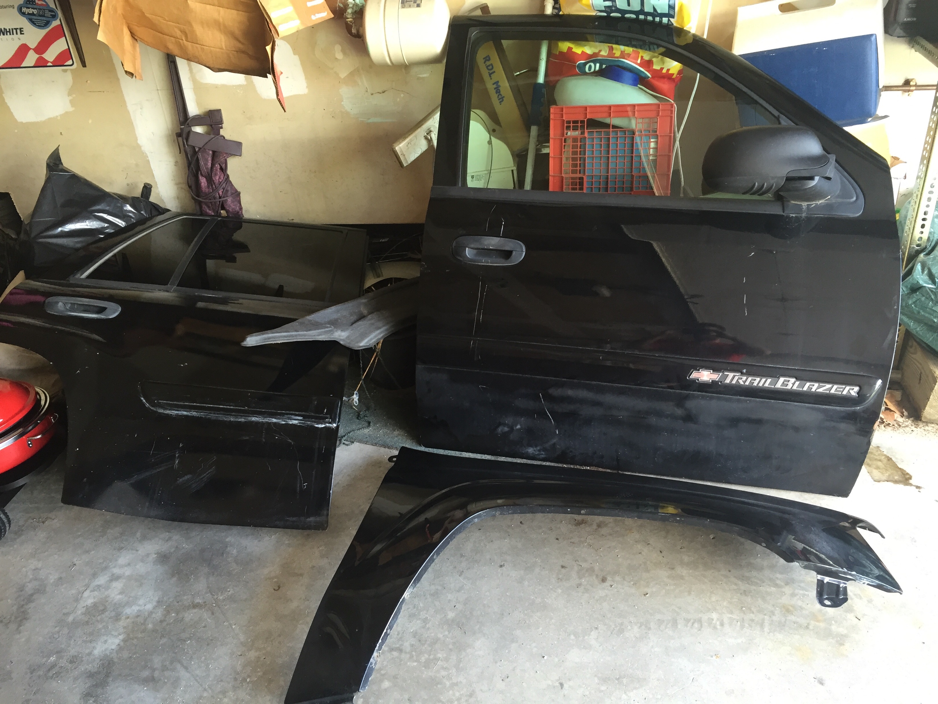 Never thought I was going to fix the passenger side dents but found a sweet deal on the doors and fenders and decided to take a ride up to Bingham Maine today to pick up both passenger doors and a passenger fender for $145. Should do the job when the internals get switched and they get repainted.